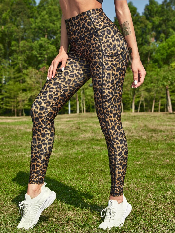 Legging de sport léopard avec poche de téléphone