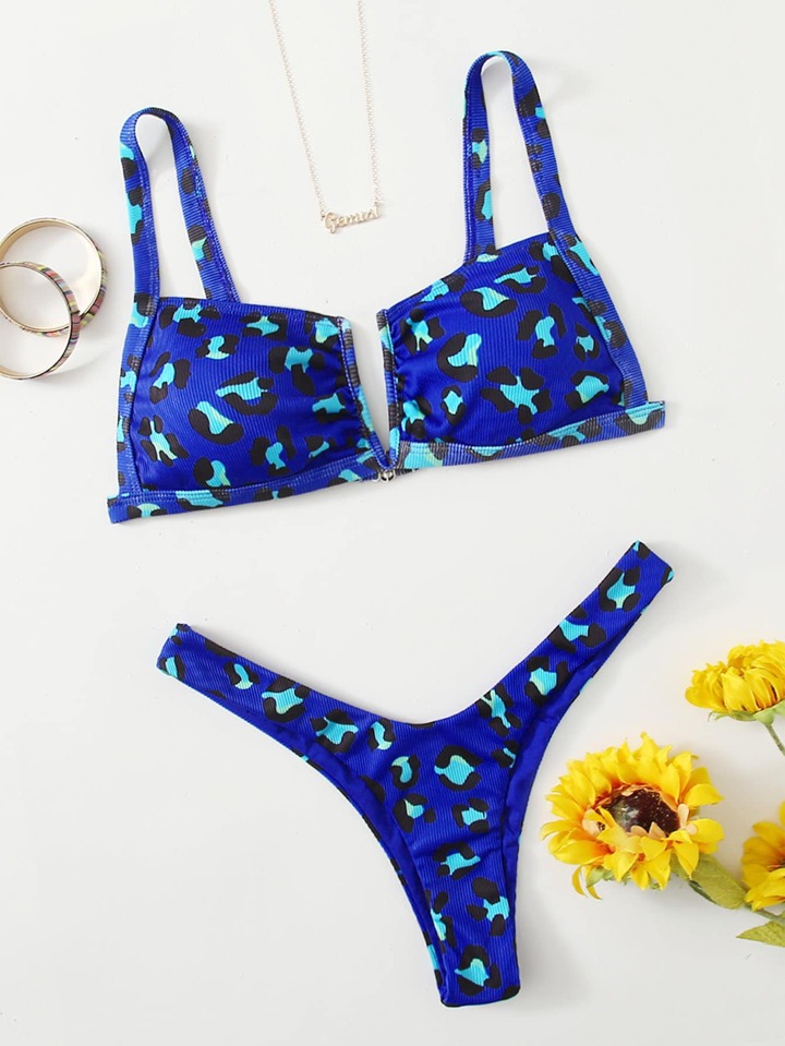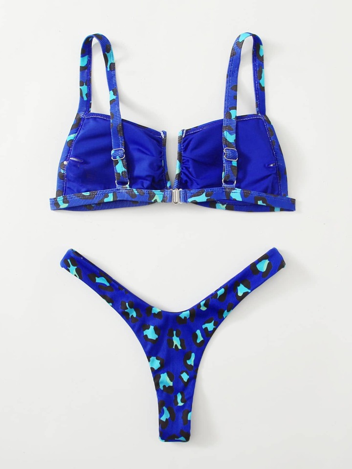 Ensemble bikini thong à armature en V léopard