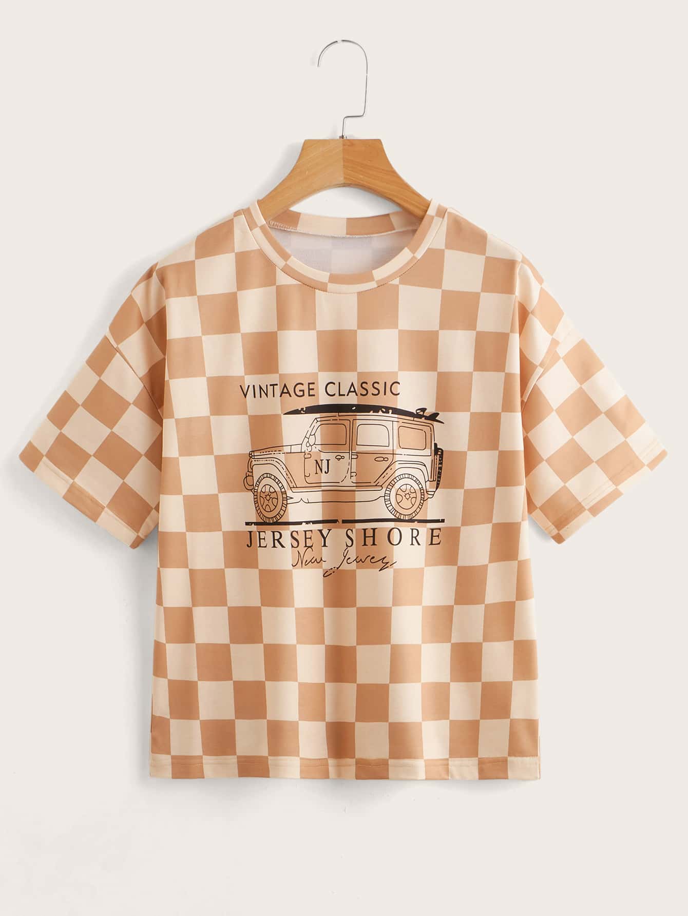 T-shirt lettre voiture à carreaux