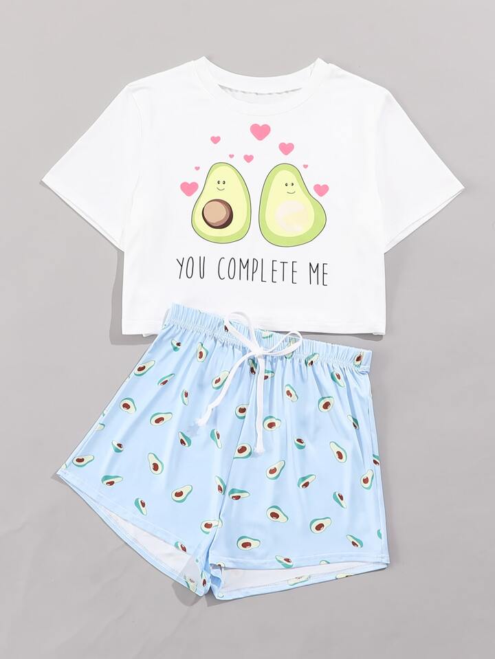 Ensemble de pyjama avec imprimé avocat cartoon
