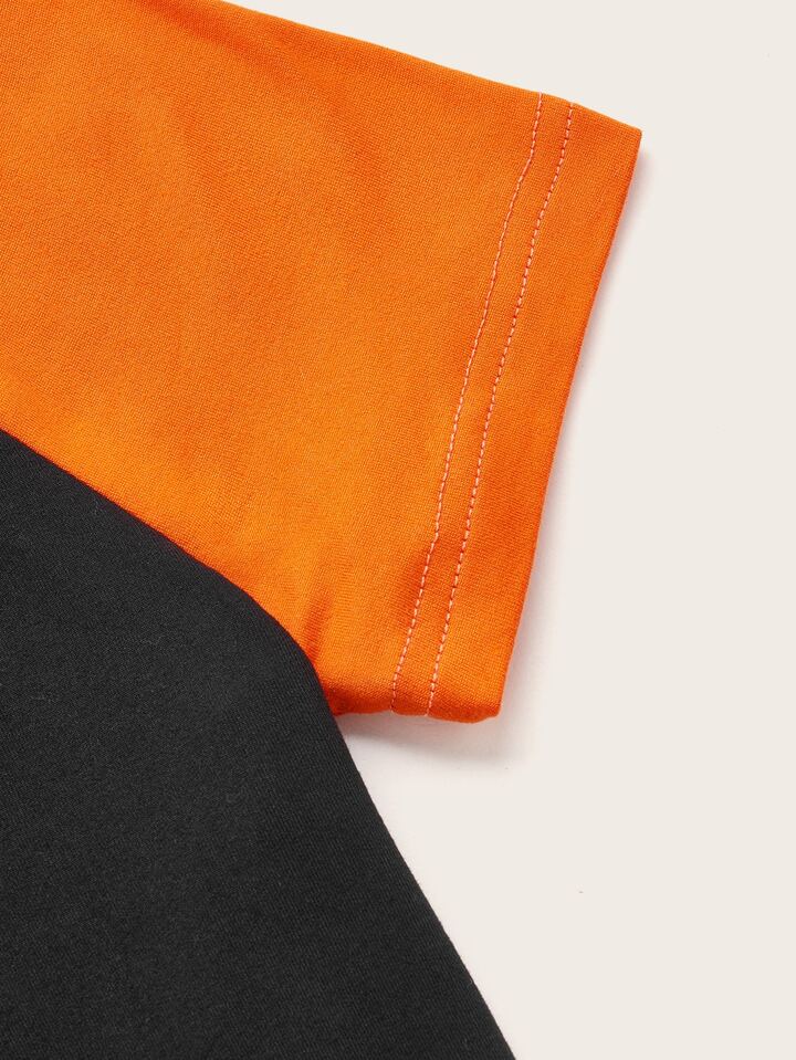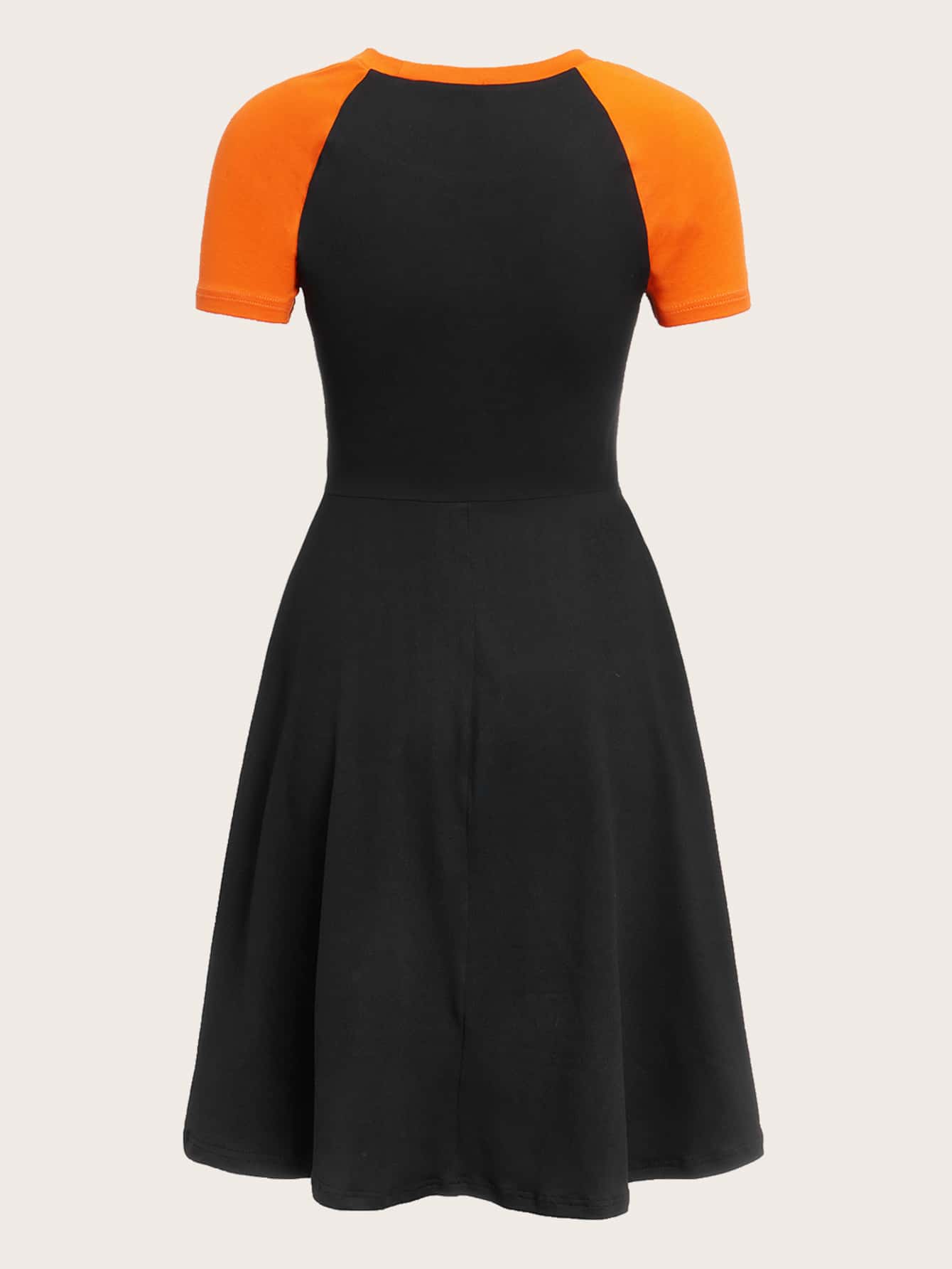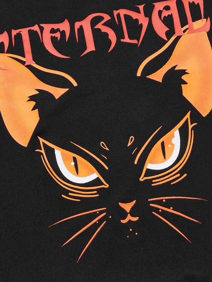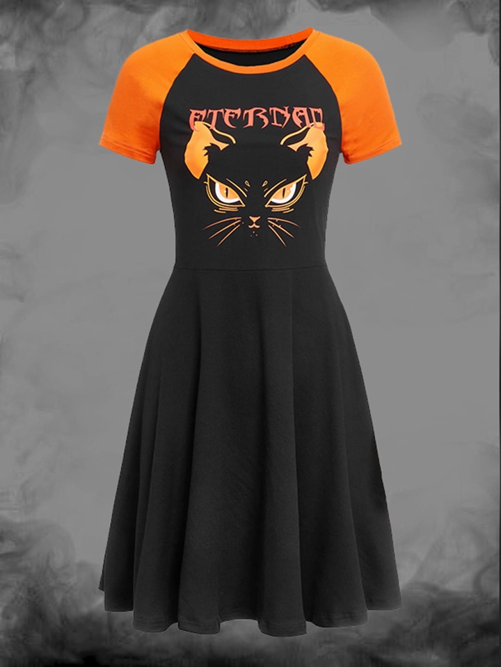 Robe à motif lettre chat à blocs de couleurs manches raglan