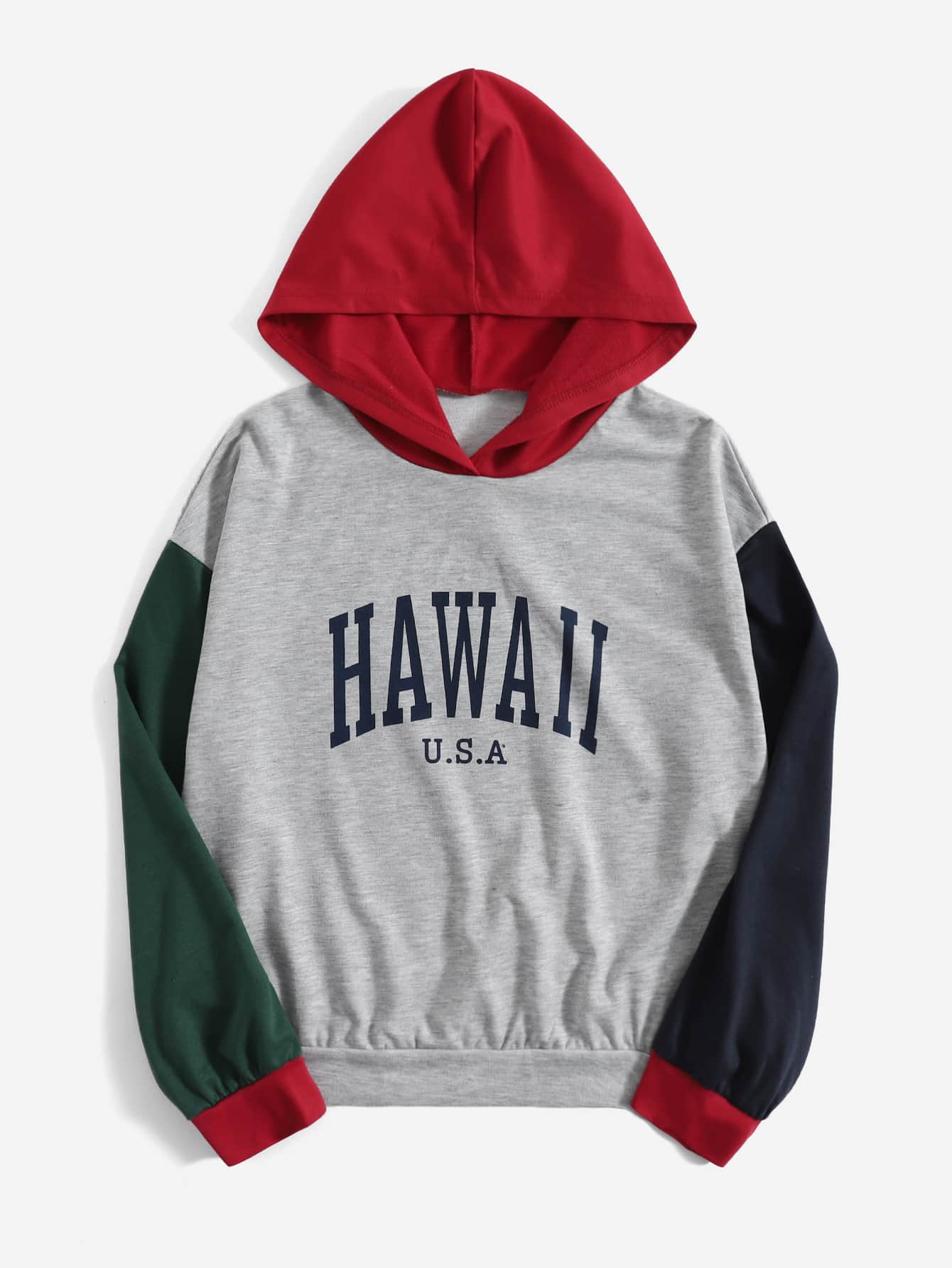 Sweat-shirt à capuche lettre à blocs de couleurs