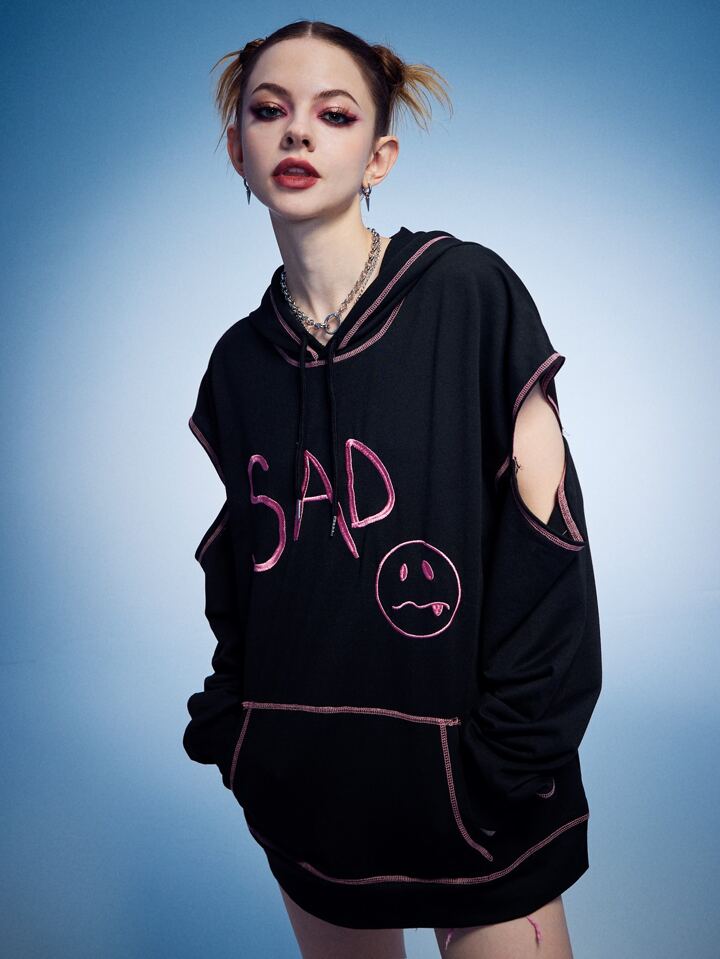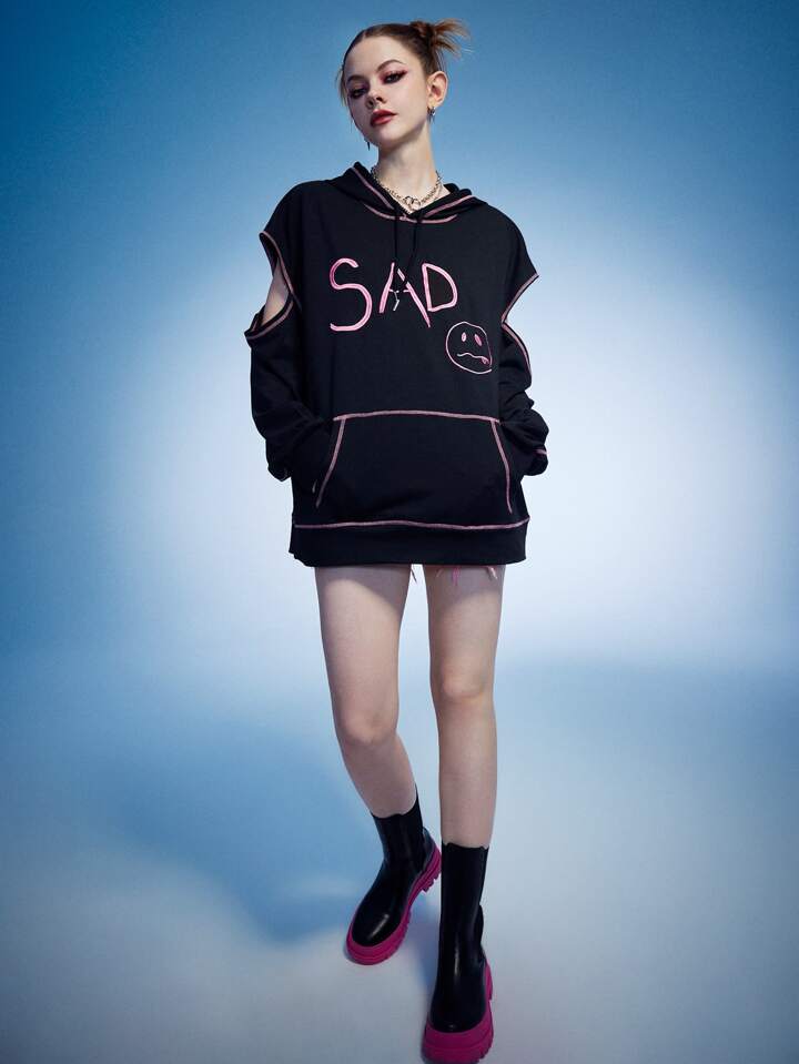 Sweat-shirts pour femmes Cordon Broderie Poche Découpe Casual Lettres