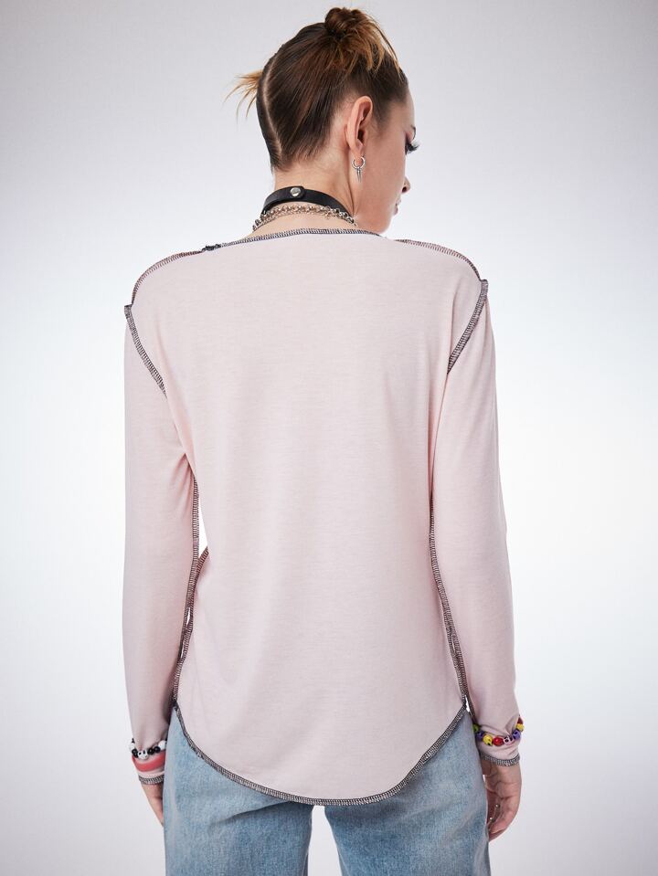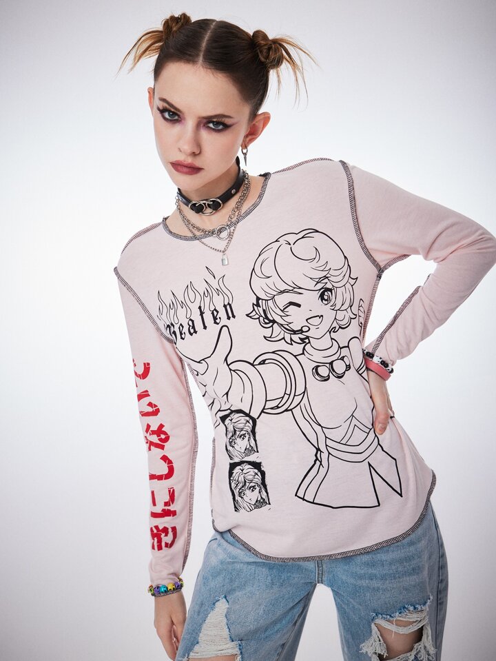 T-shirts pour femmes Coutures apparentes Casual Portrait Lettres