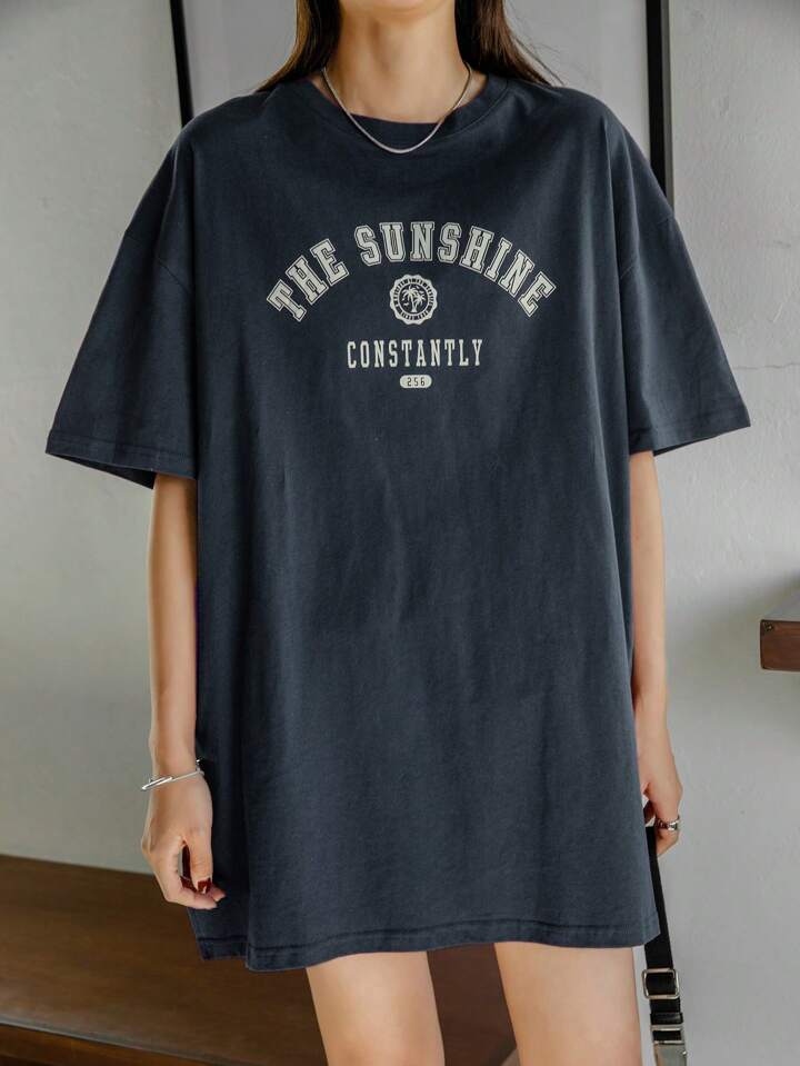 T-shirt oversize d'été avec graphique en lettre et épaule tombante