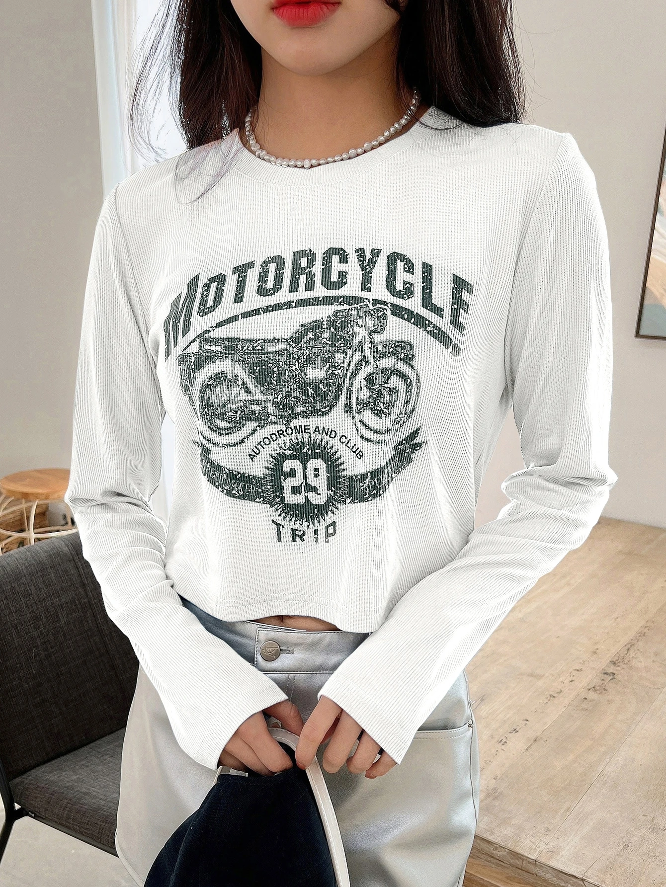 T-shirt à imprimé moto et lettre