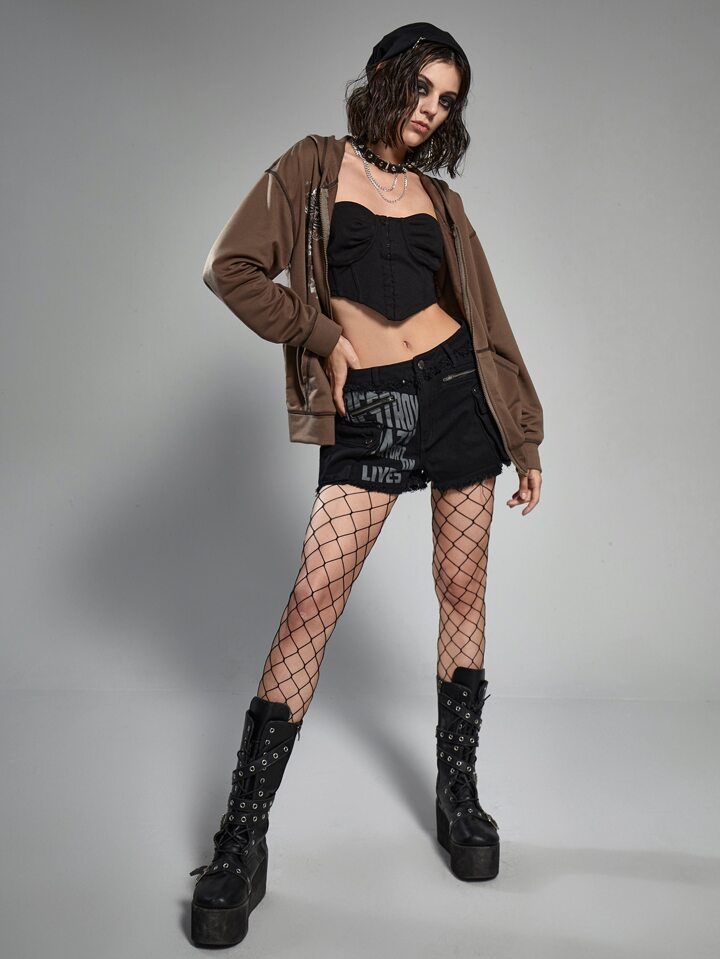 Short en jean lettre à poche déchiré