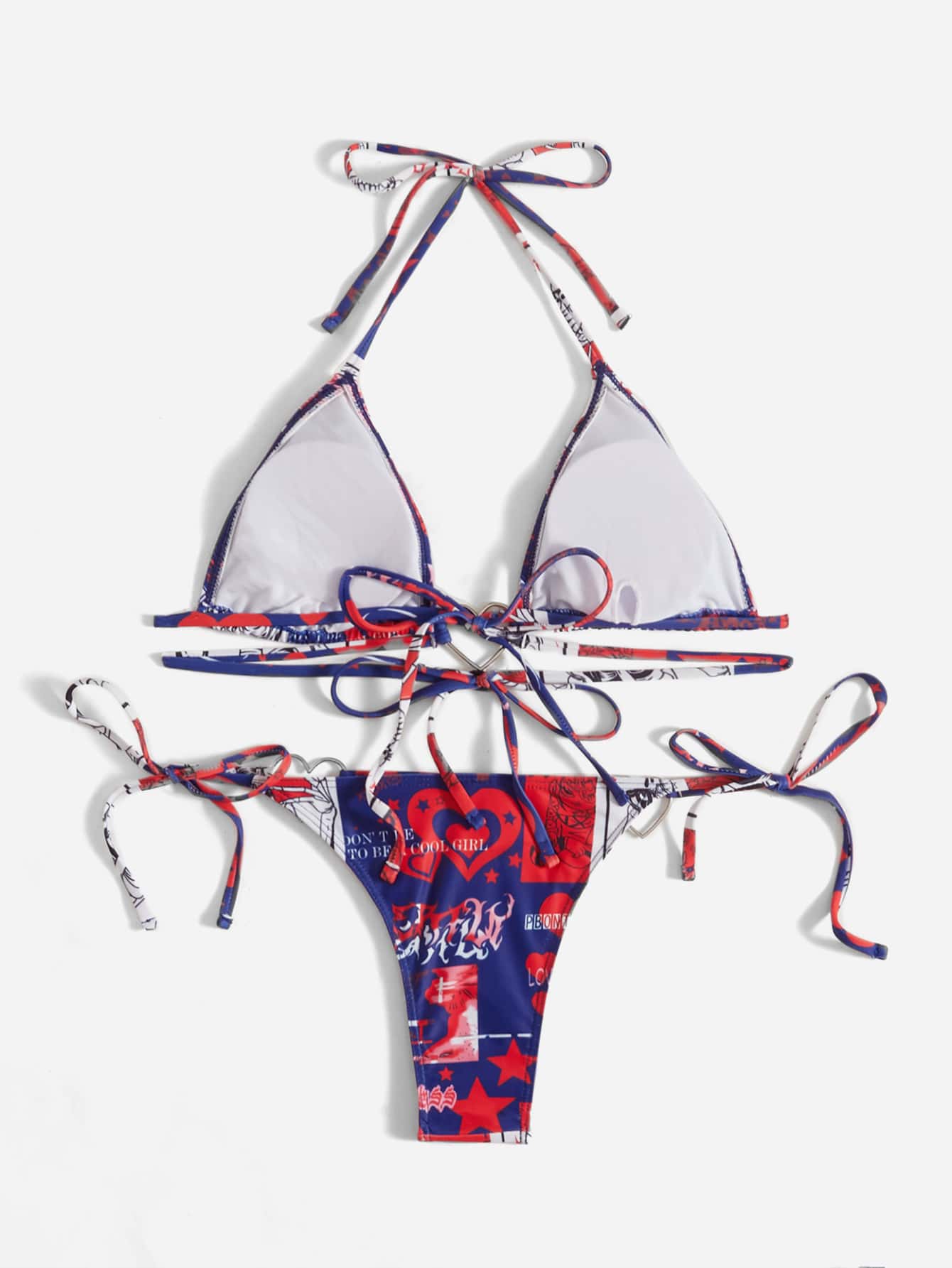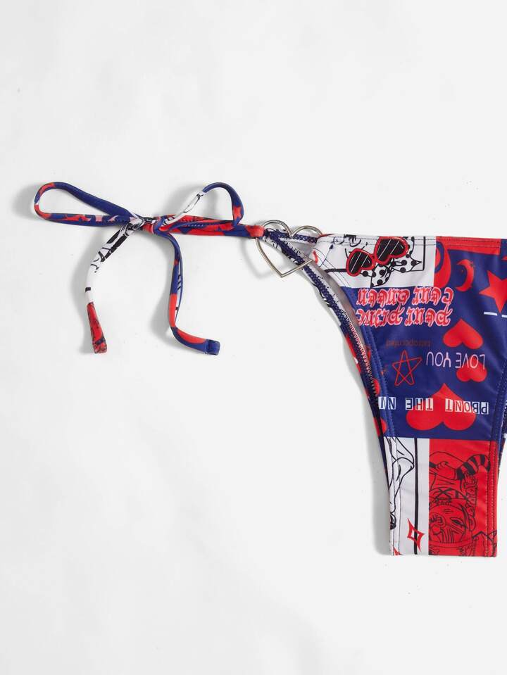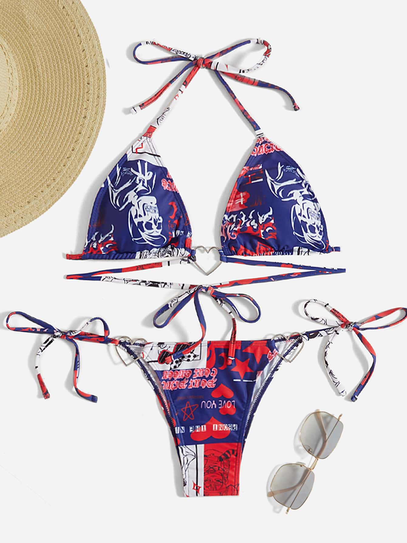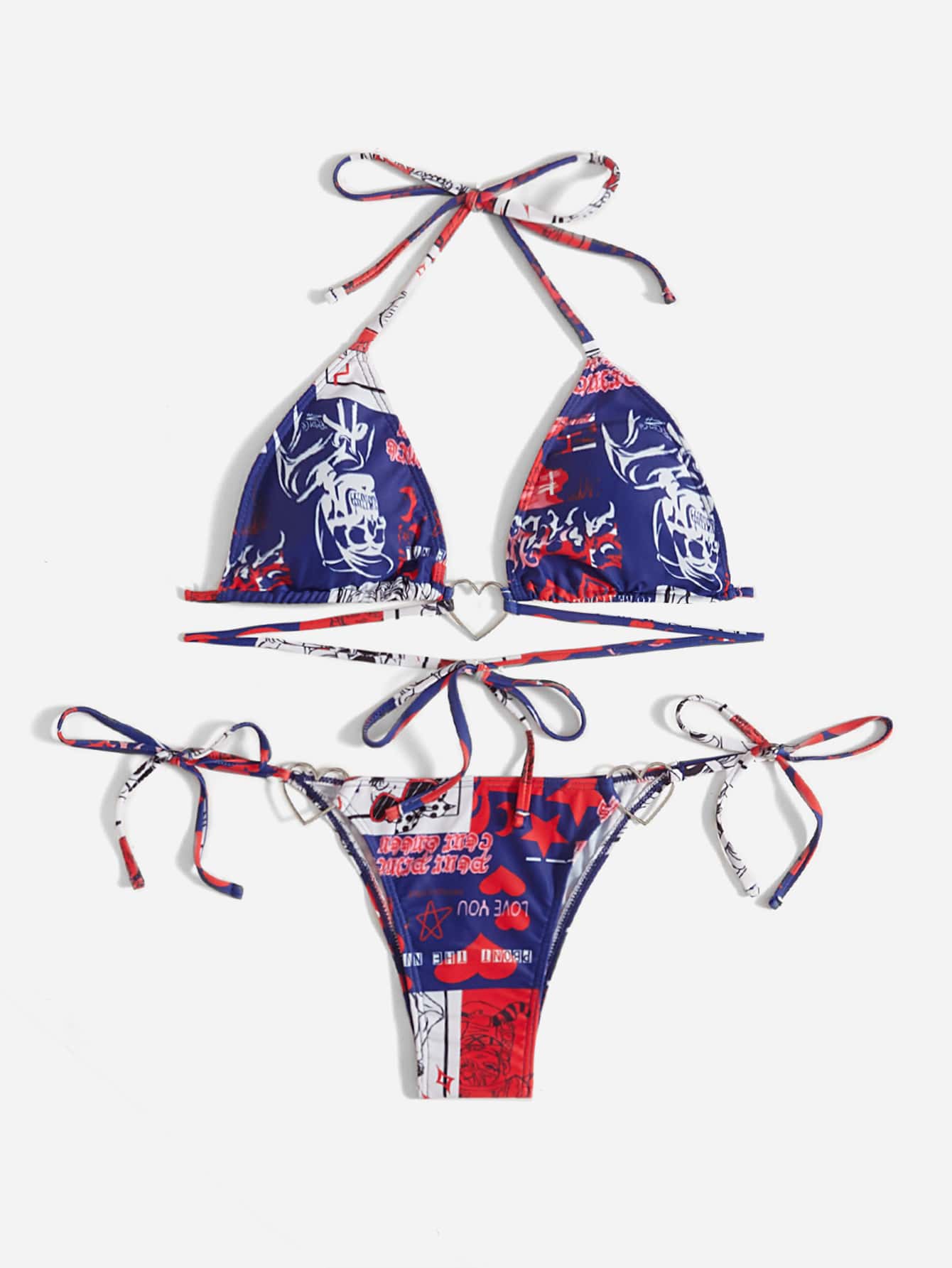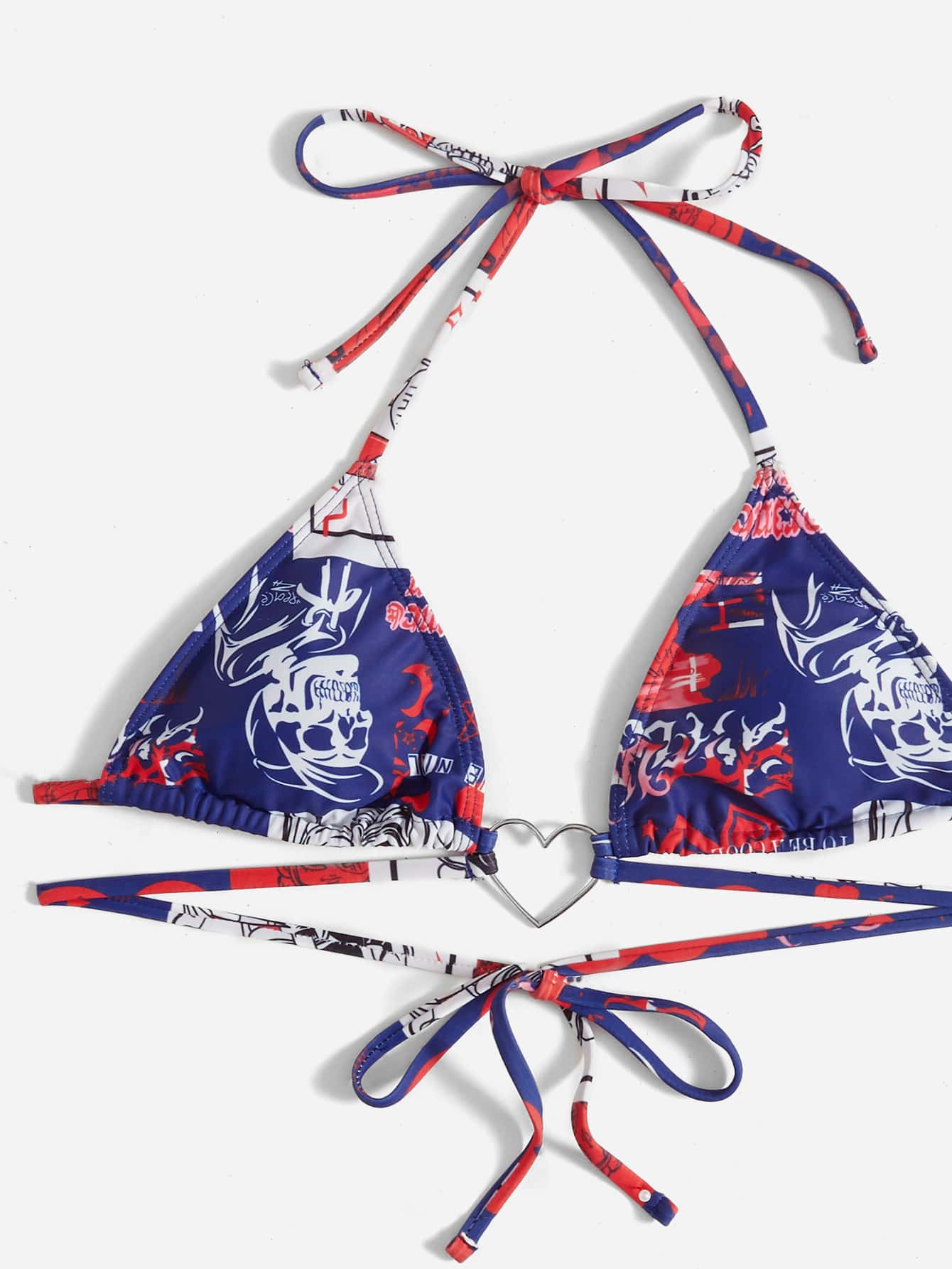 Bikini à crâne graphique en lettre croisée avec nœud à attacher derrière le cou et sur les côtés