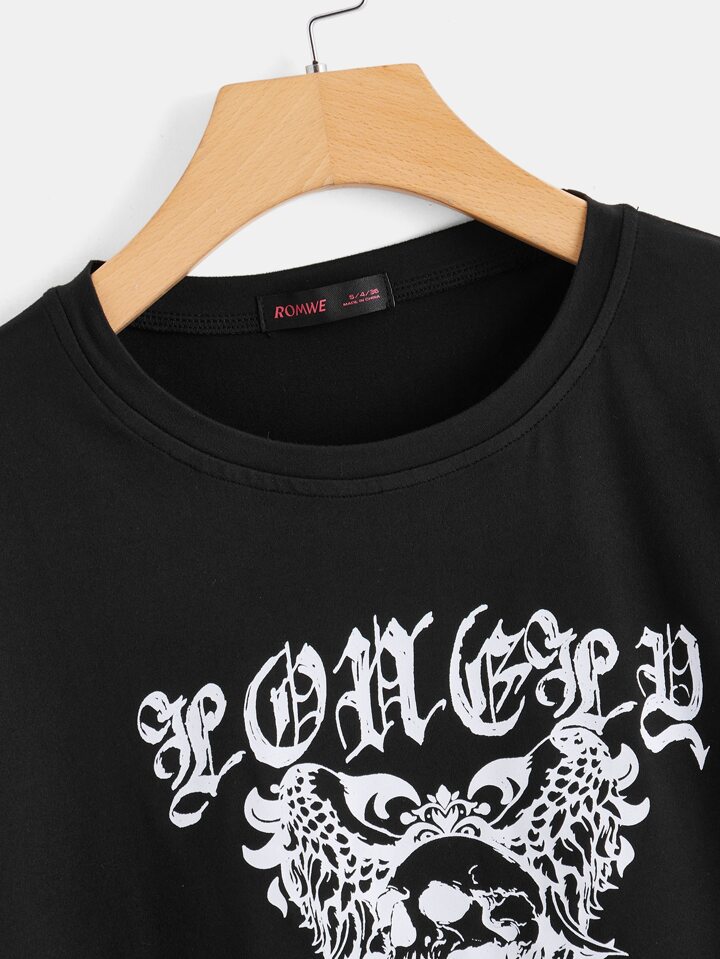 T-Shirt Court Lettre Motif Tête De Mort