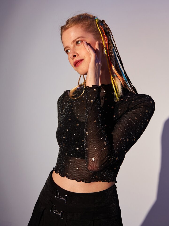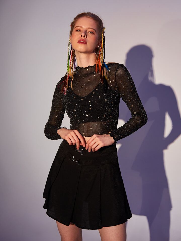 Top court en tulle à ourlet ondulé(sans soutien-gorge)