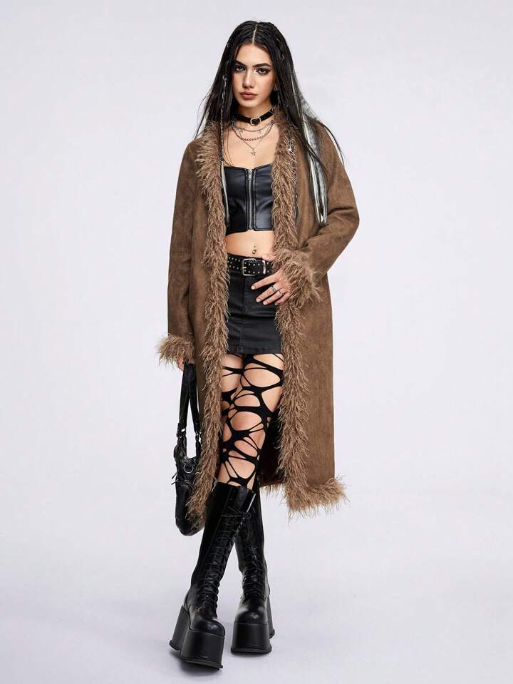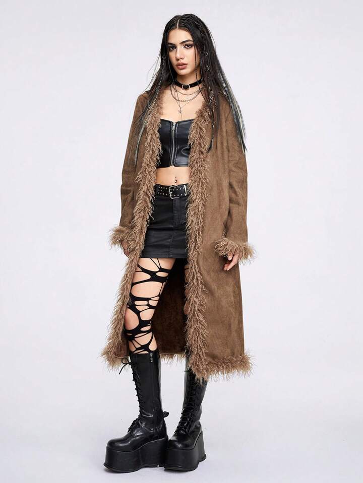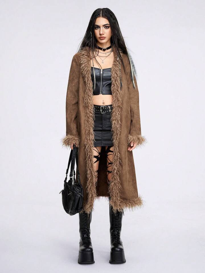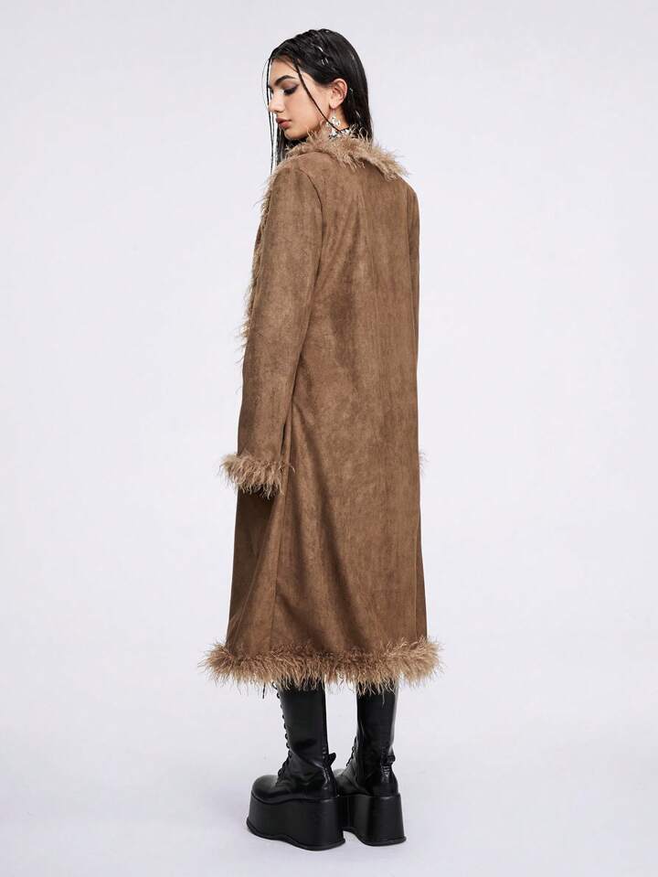 Manteau long pour femme Maillard Rétro en suède à bordure avec doublure en fourrure