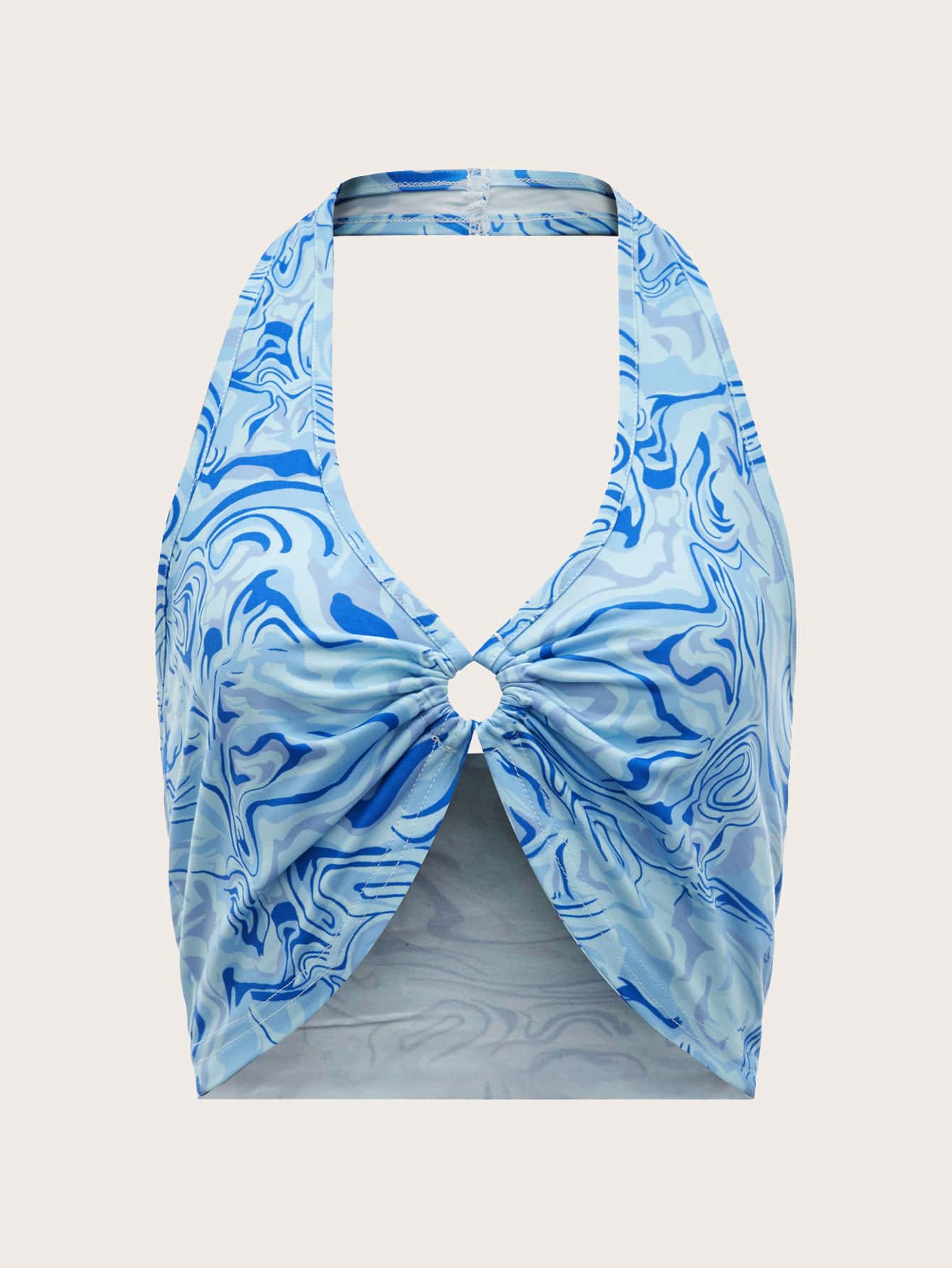 Top court ras-du-cou à imprimé marbré à détail anneau