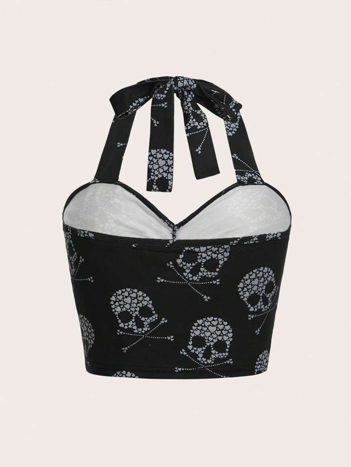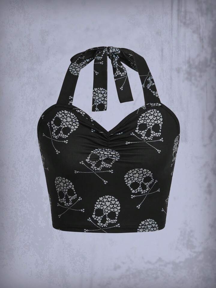 Maryam Alam Top Ras-Du-Cou Imprimé Tête De Mort À Ruchés