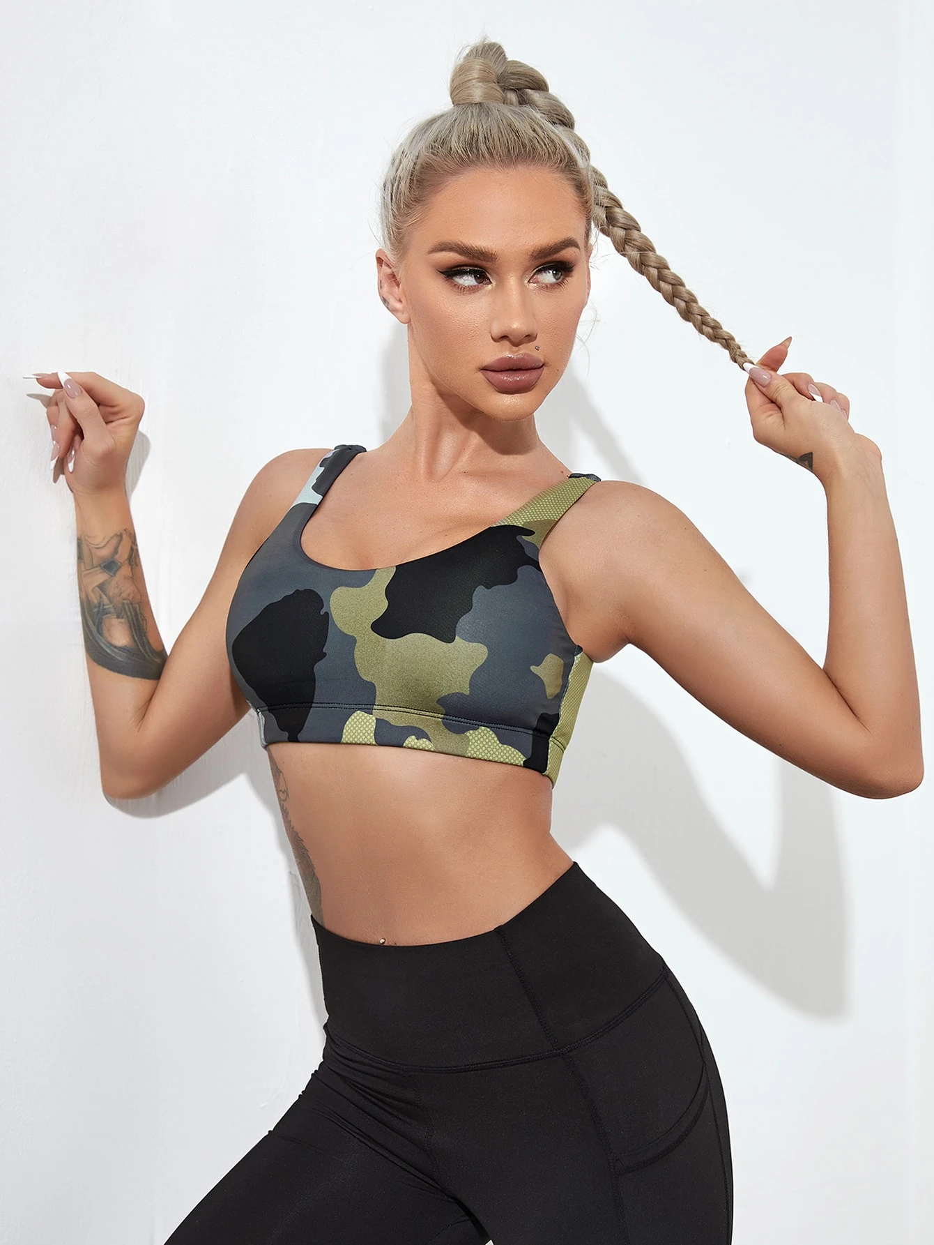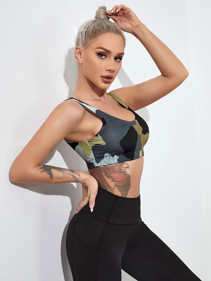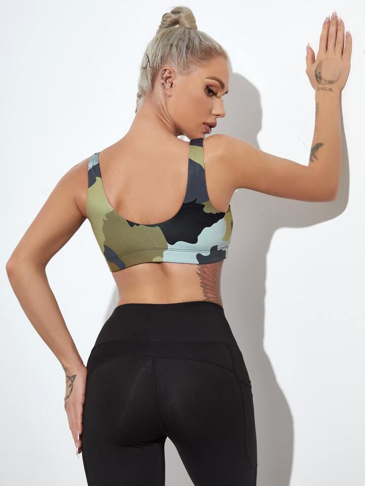 Brassière de sport courte support moyen avec imprimé camouflage