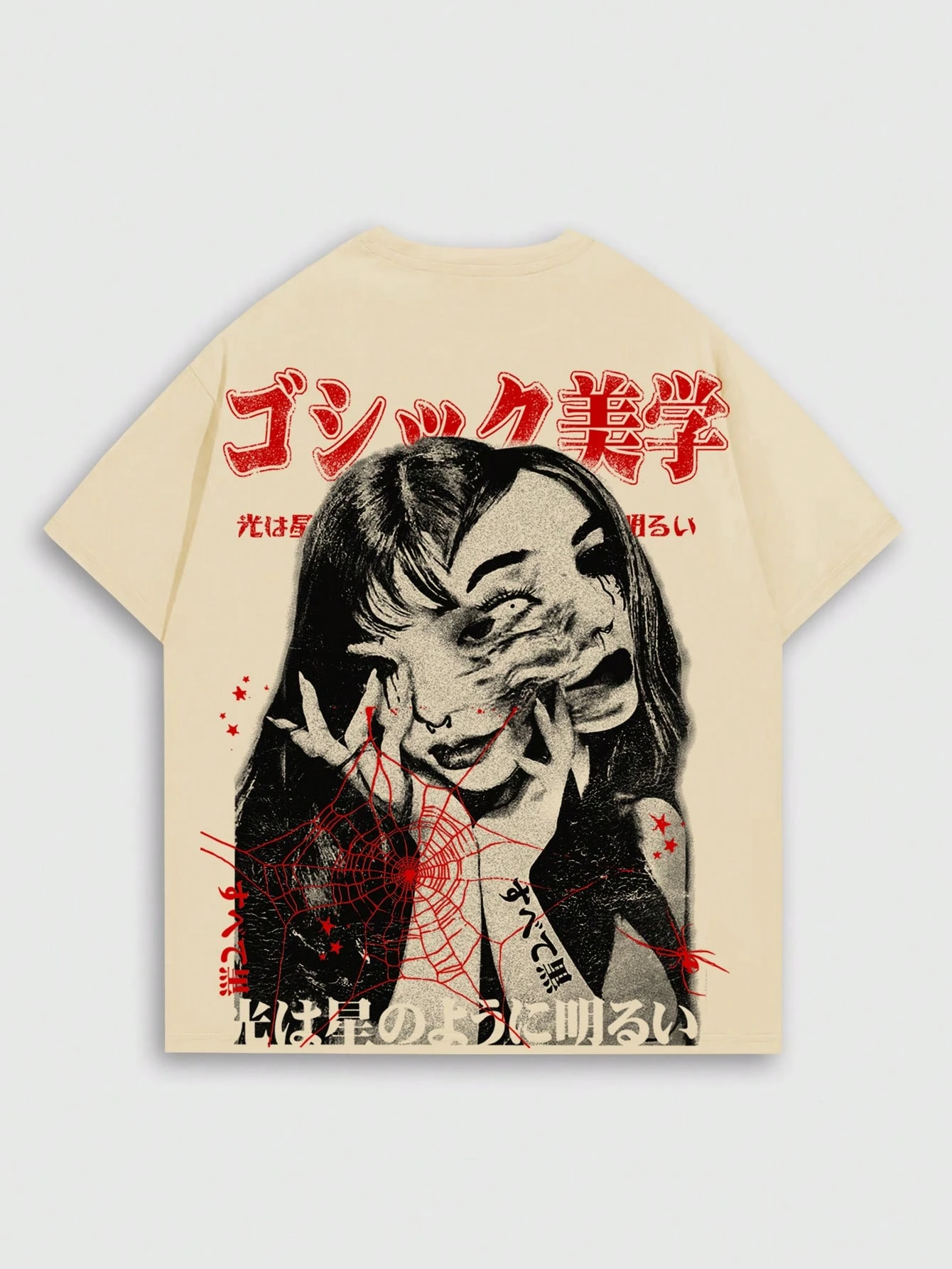 Grunge Punk T-shirt à manches courtes d'été pour hommes, style décontracté, mode de rue, pour le trajet quotidien, avec imprimé de personnage d'horreur japonais