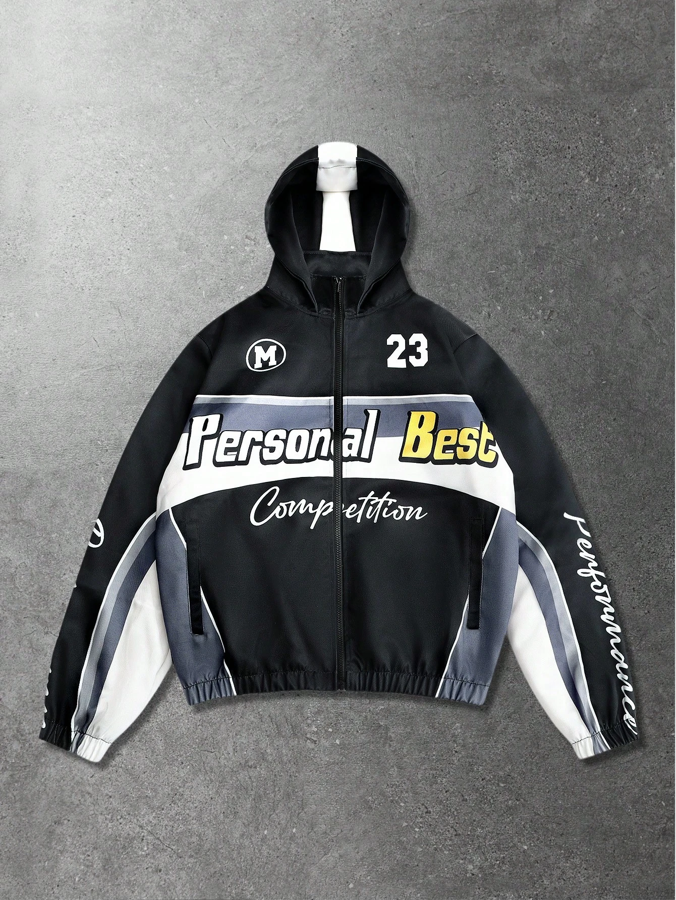 Veste à capuche pour hommes avec imprimé lettres et col zippé bicolore