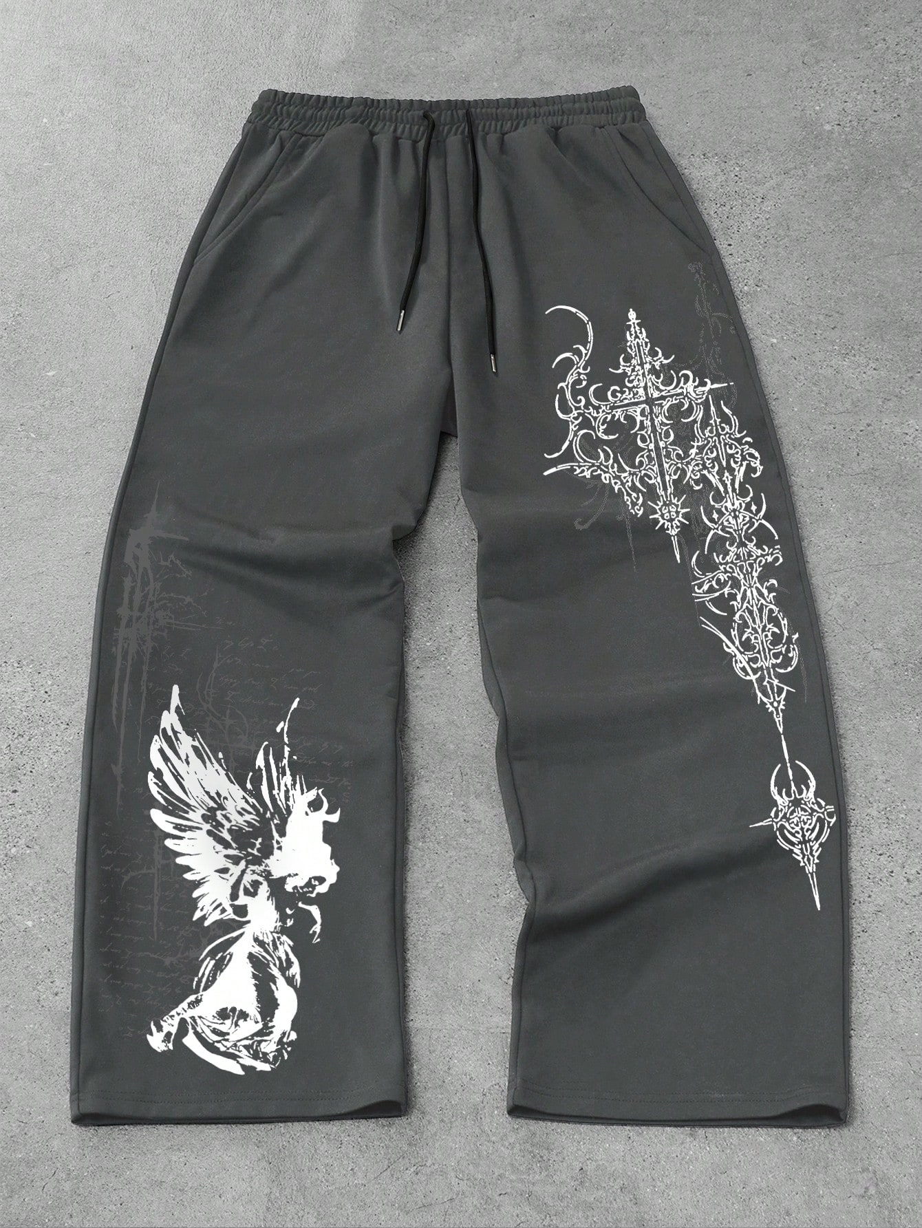 Goth Pantalon de survêtement décontracté et ample à jambe droite pour hommes, noir