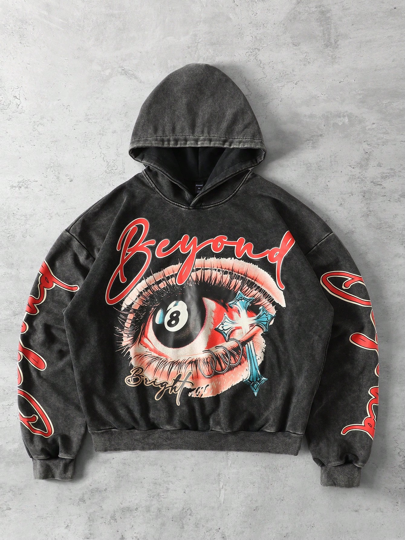 Street Life sweat-shirt à capuche court vintage lavé pour hommes, style rétro streetwear