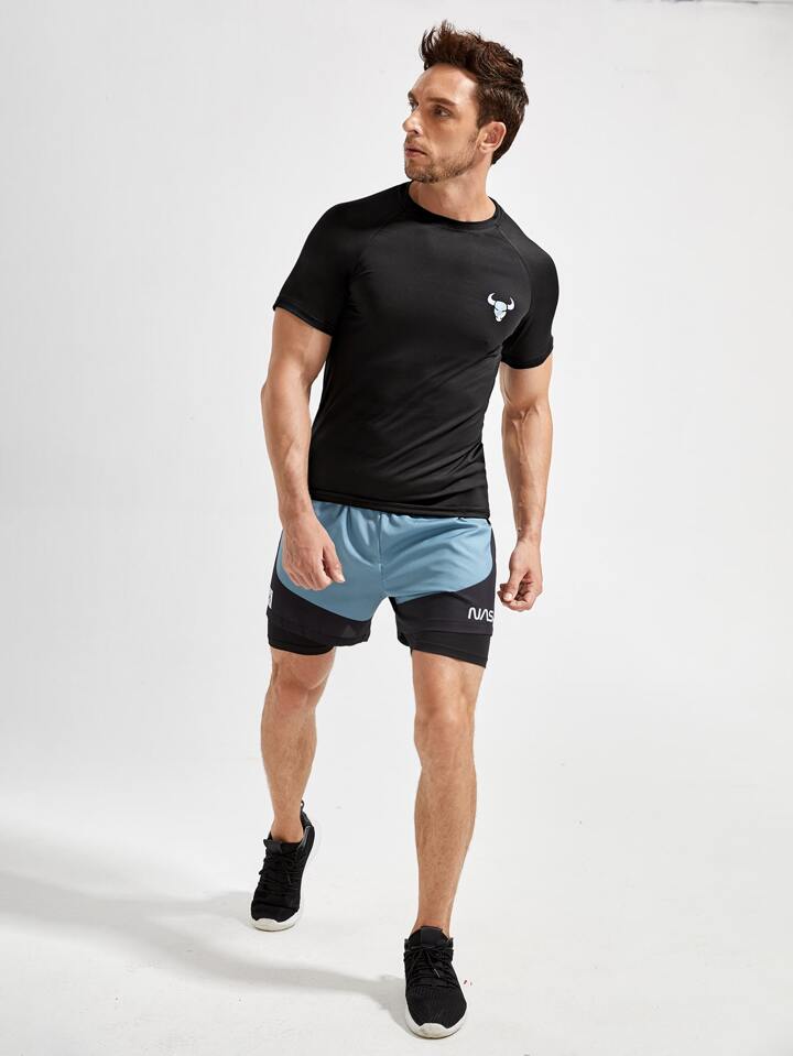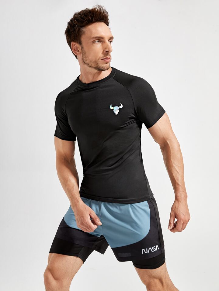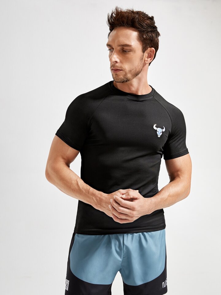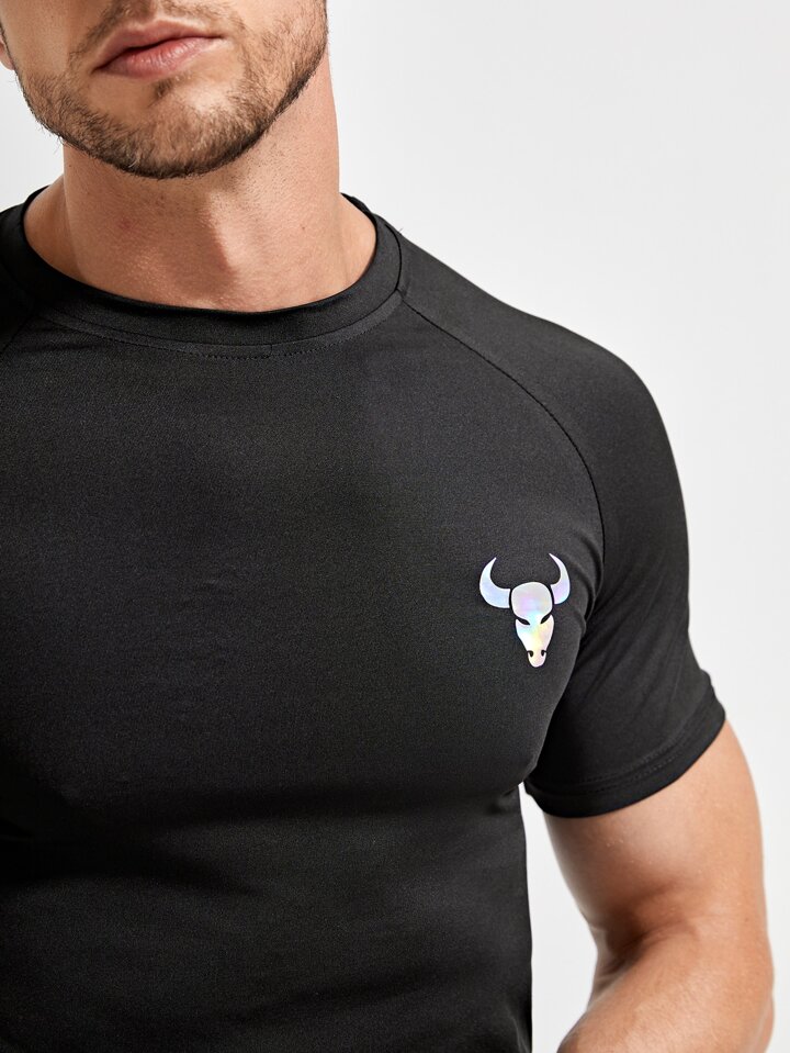 Homme T-shirt de sport tête de taureau à imprimé manches raglan