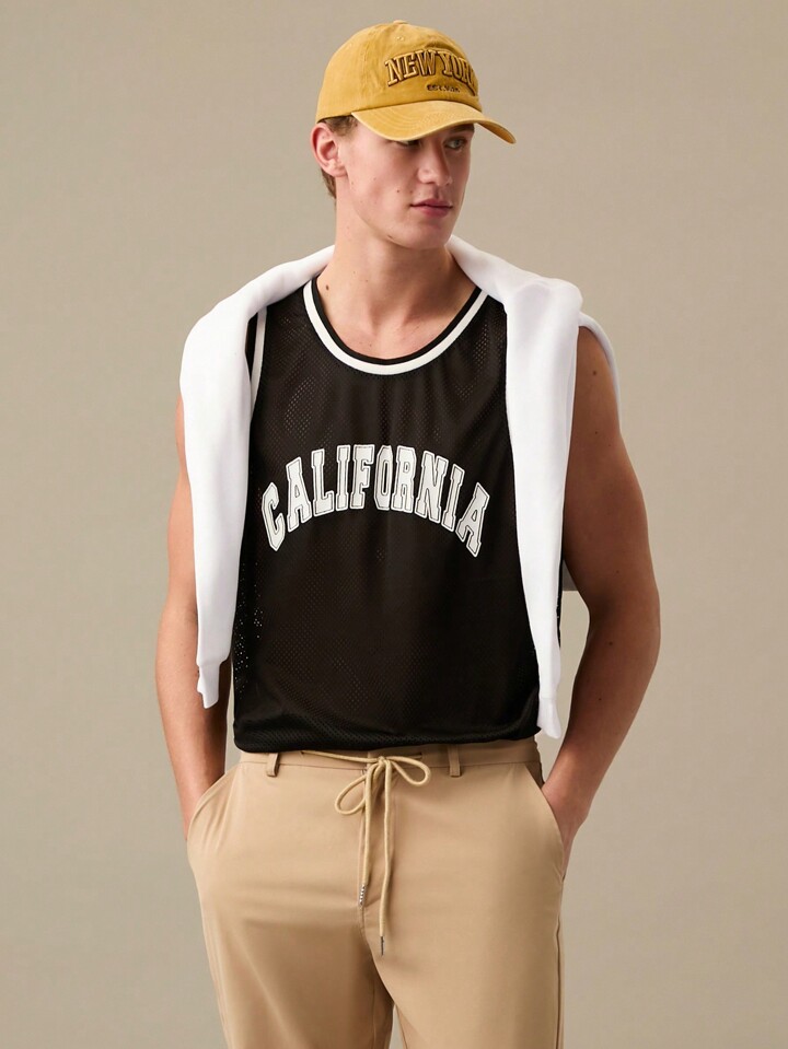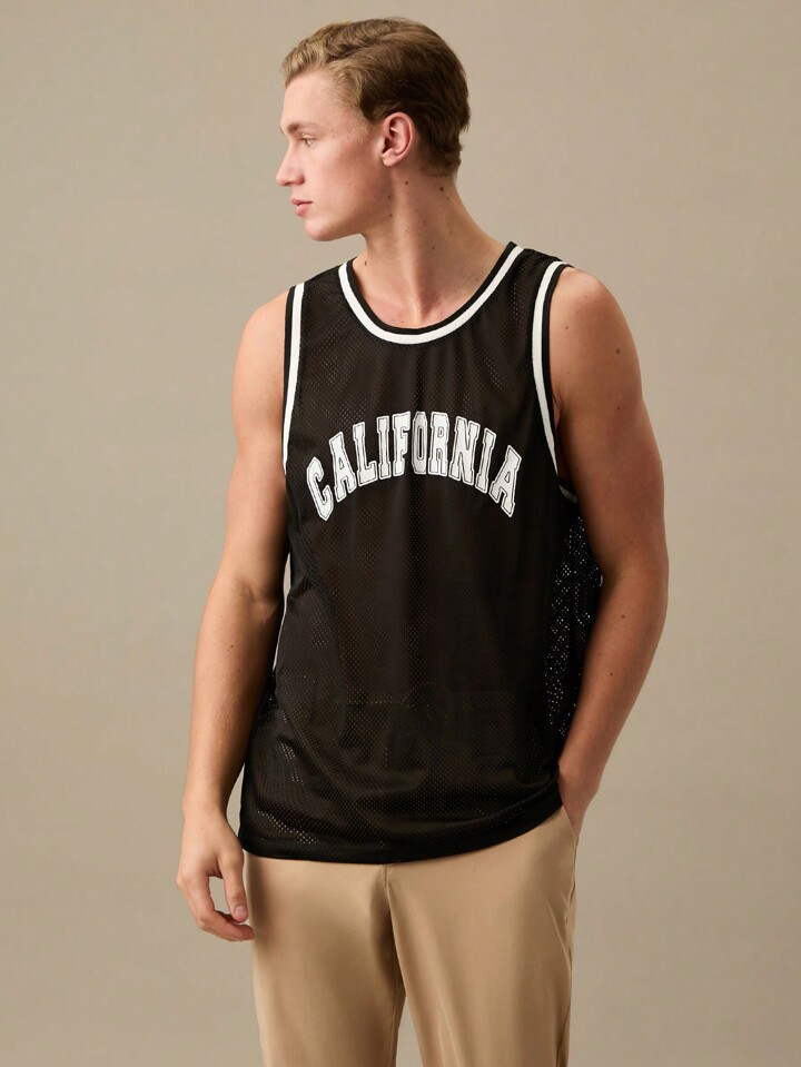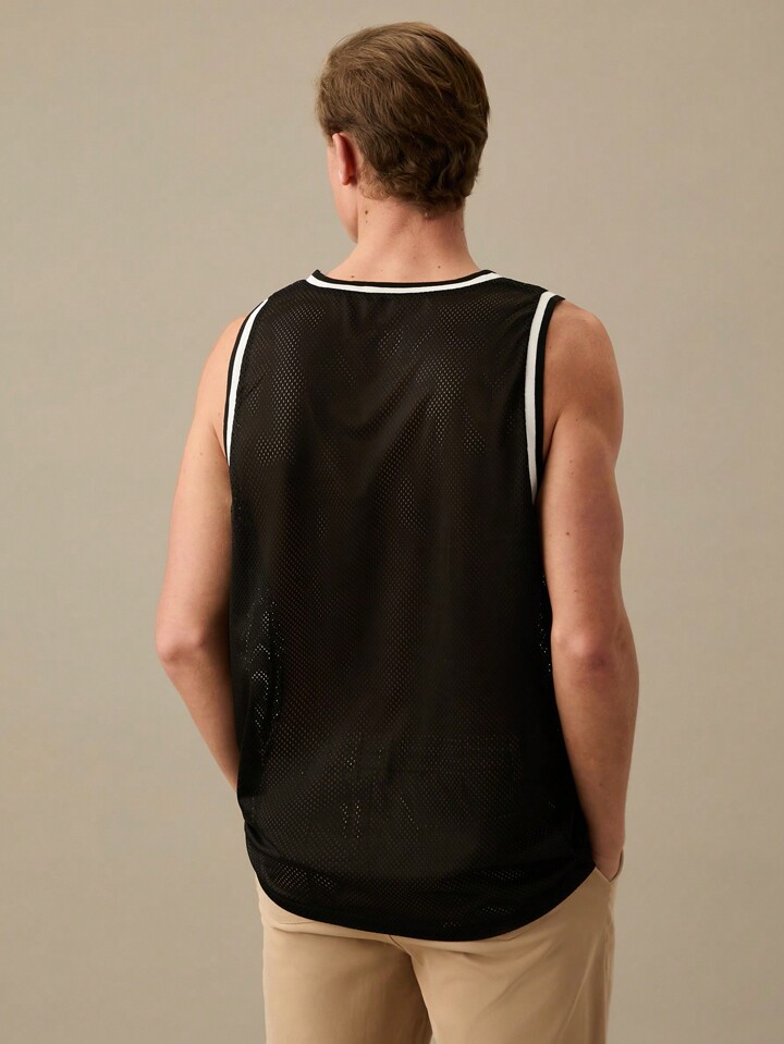 Maillot de basketball en maille avec inscription graphique et garniture contrastée pour hommes, rentrée scolaire