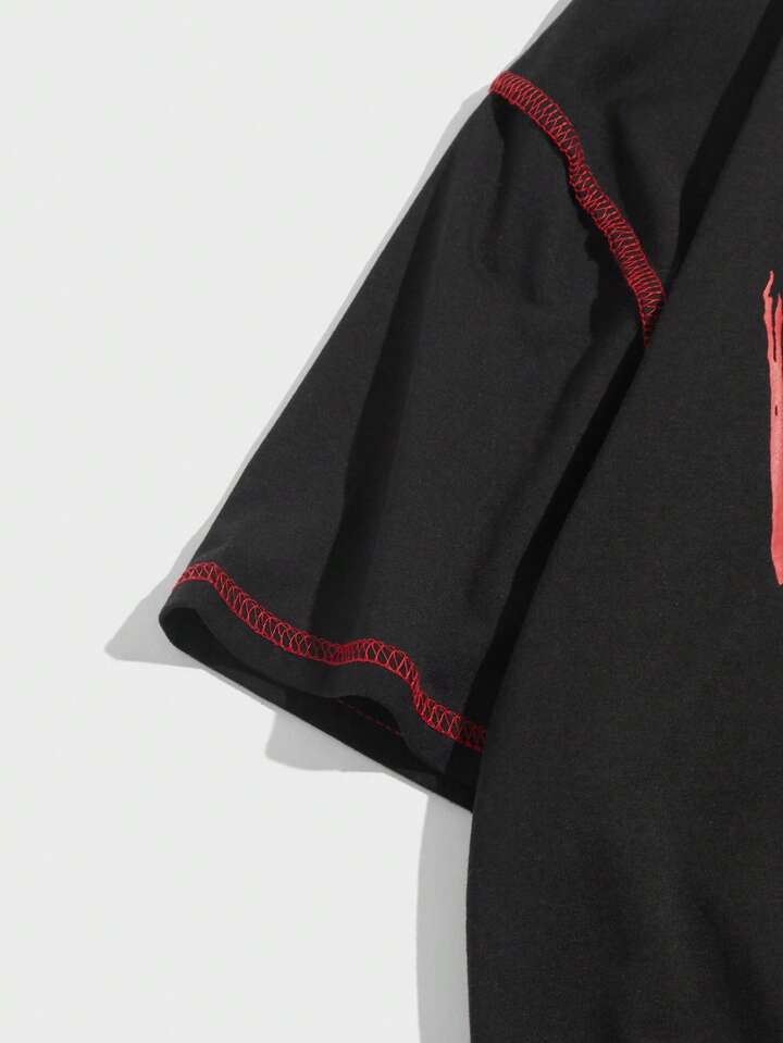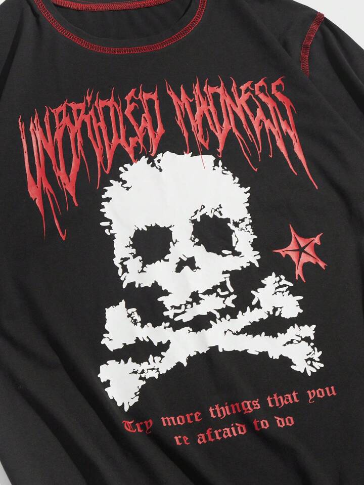 T-shirt Pour Hommes En Avec Crâne Et Slogan Graphique Surpiqué