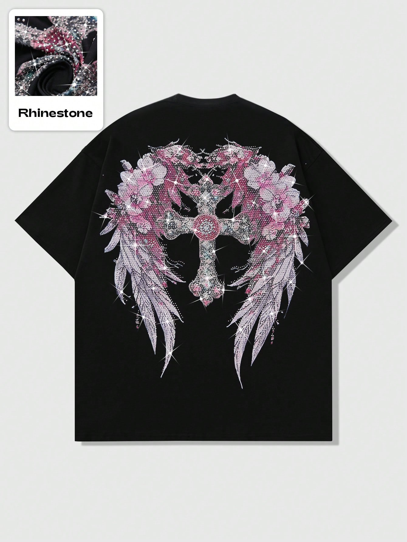 Tee-shirt à manches courtes assorti pour couple gothique, style de rue avec design lourd imprimé croix de sakura, Halloween