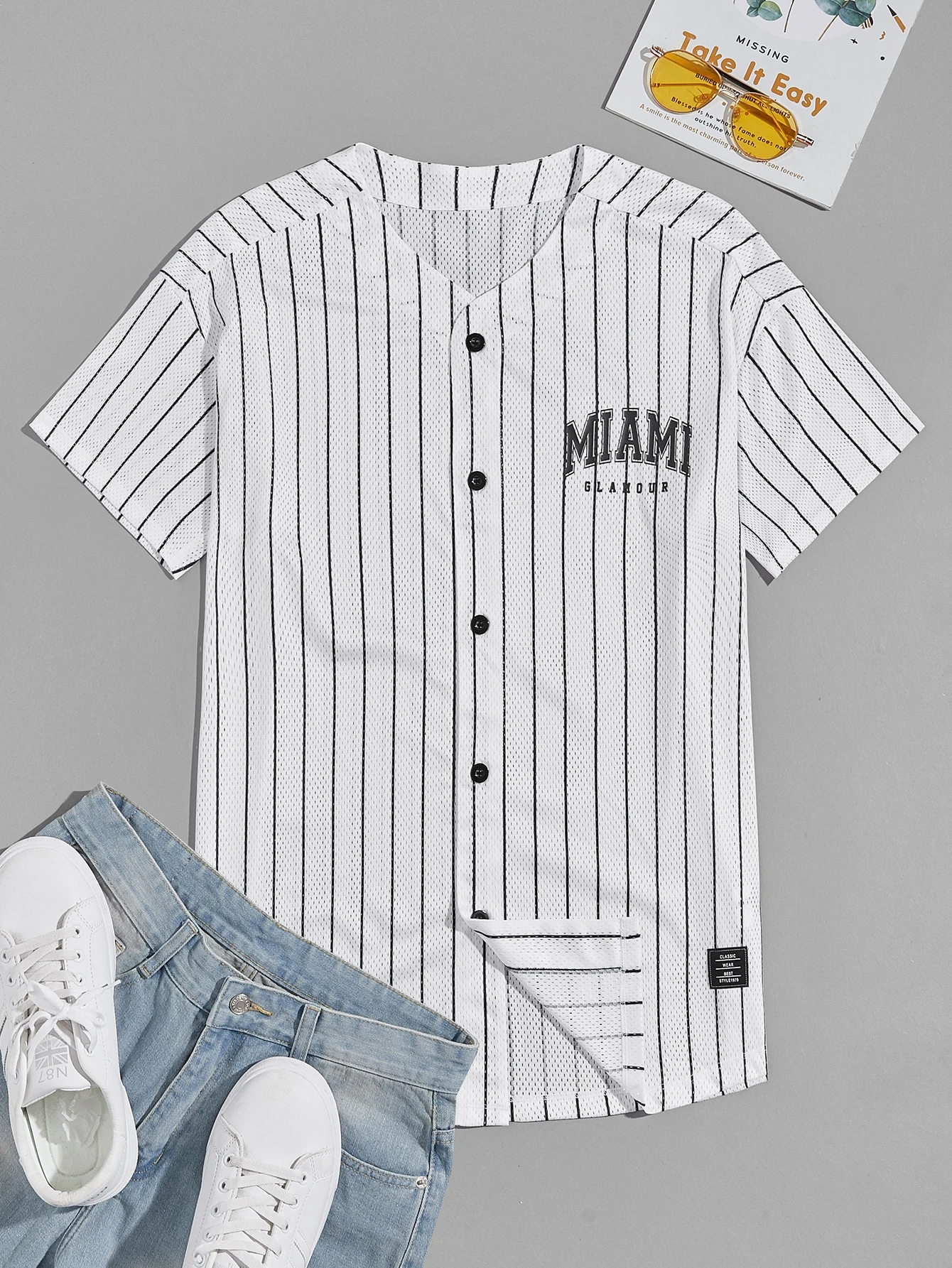 Homme Chemise à lettres à rayures en tulle