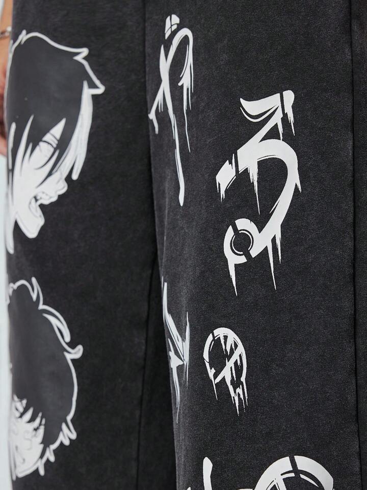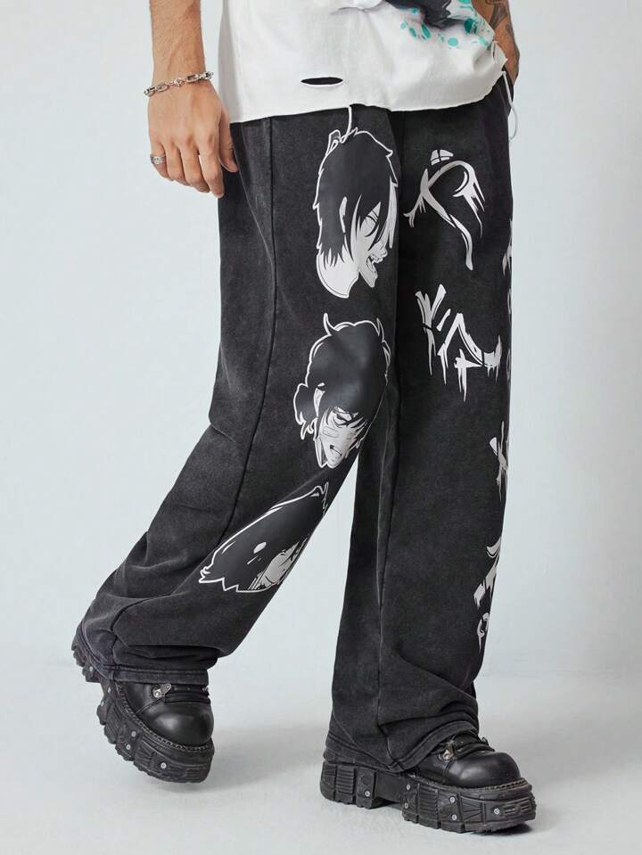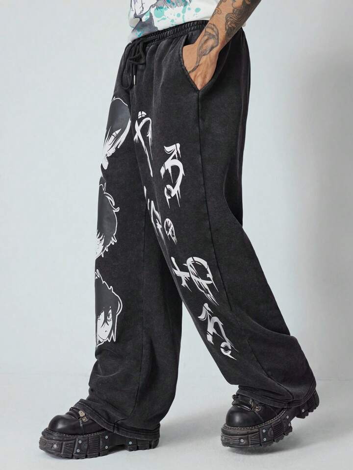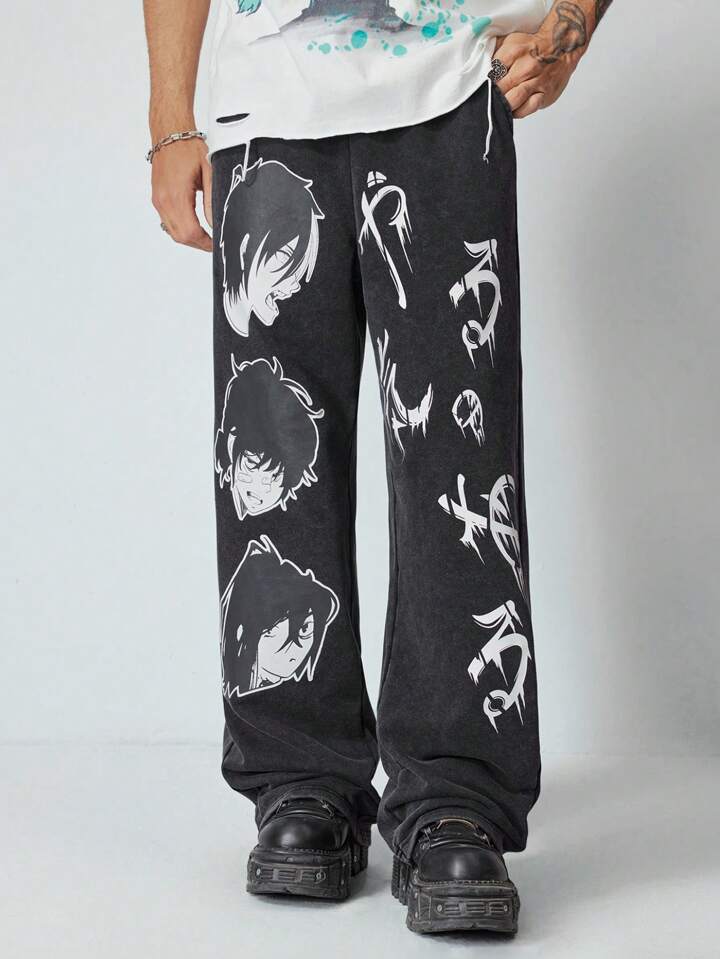 Anime Pantalon de jogging décontracté avec taille à cordon de serrage, coupe ample, imprimé de personnages de dessin animé, pour hommes