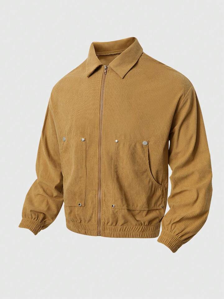 Casual Veste décontractée à manches longues en velours côtelé pour hommes, couleur café, pour l'automne/l'hiver