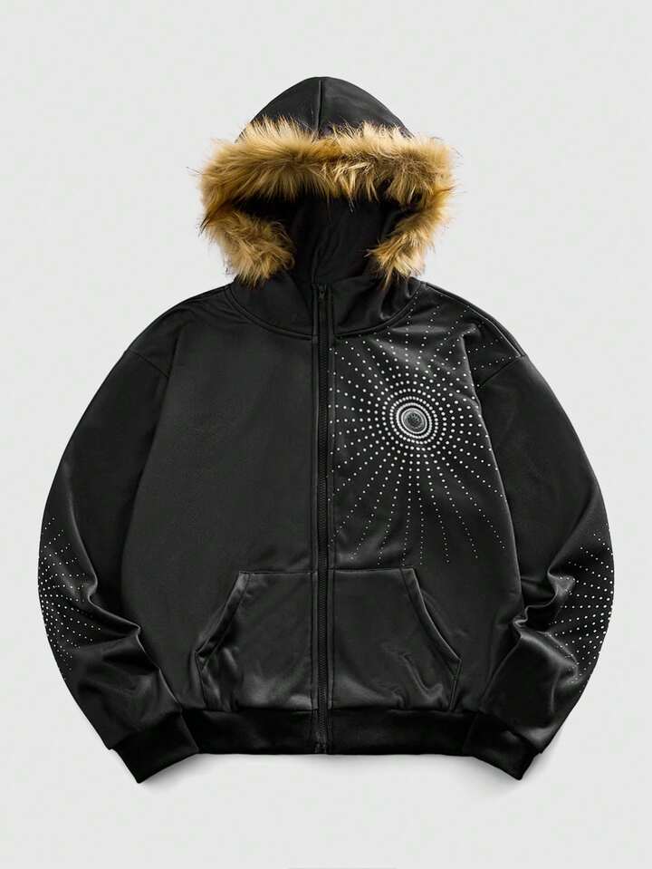 Veste décontractée à capuche avec col en fausse fourrure, style sombre mode de rue pour hommes en automne/hiver