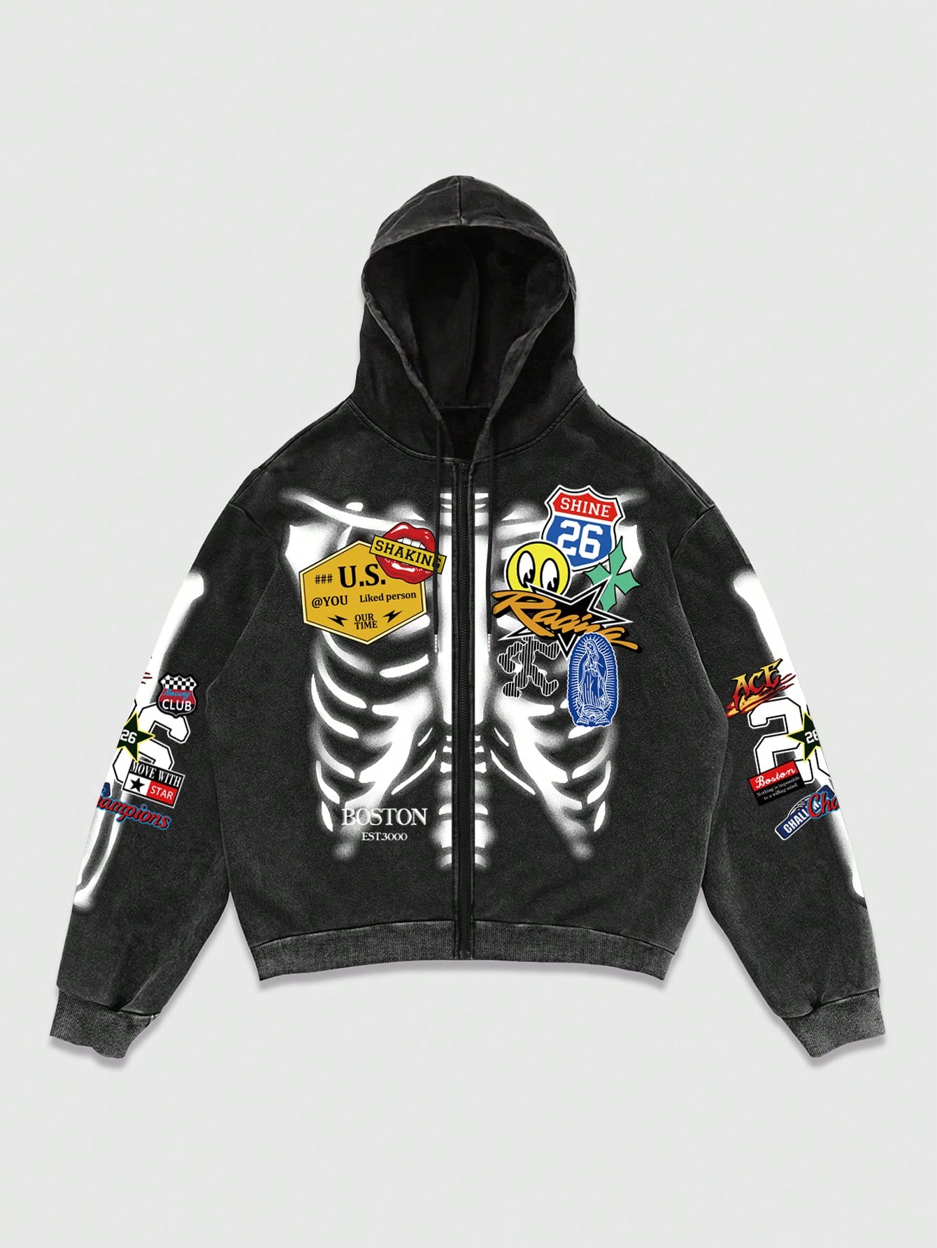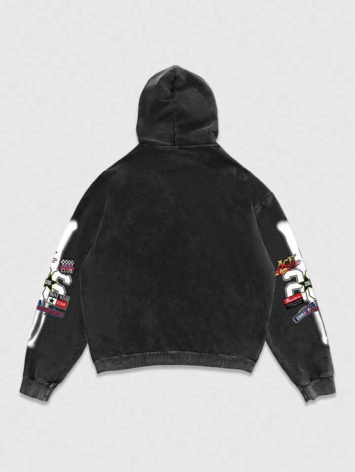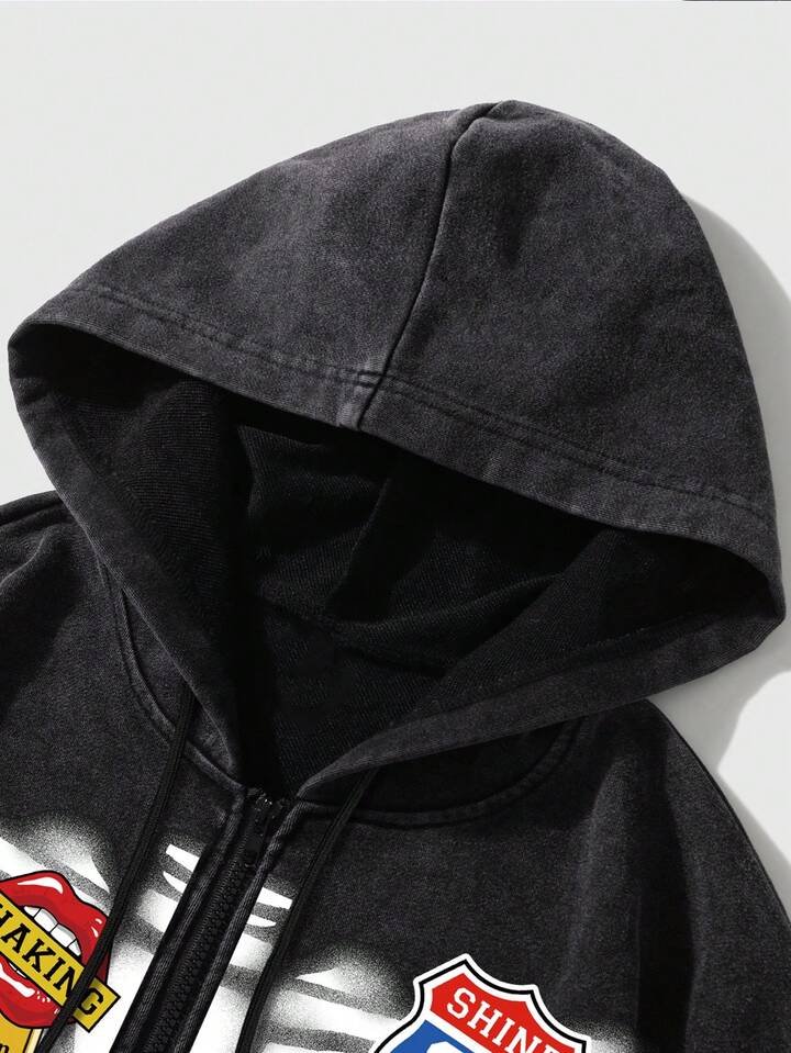 Sweat-shirt à capuche noir délavé à motif flocons de neige pour homme, automne/hiver