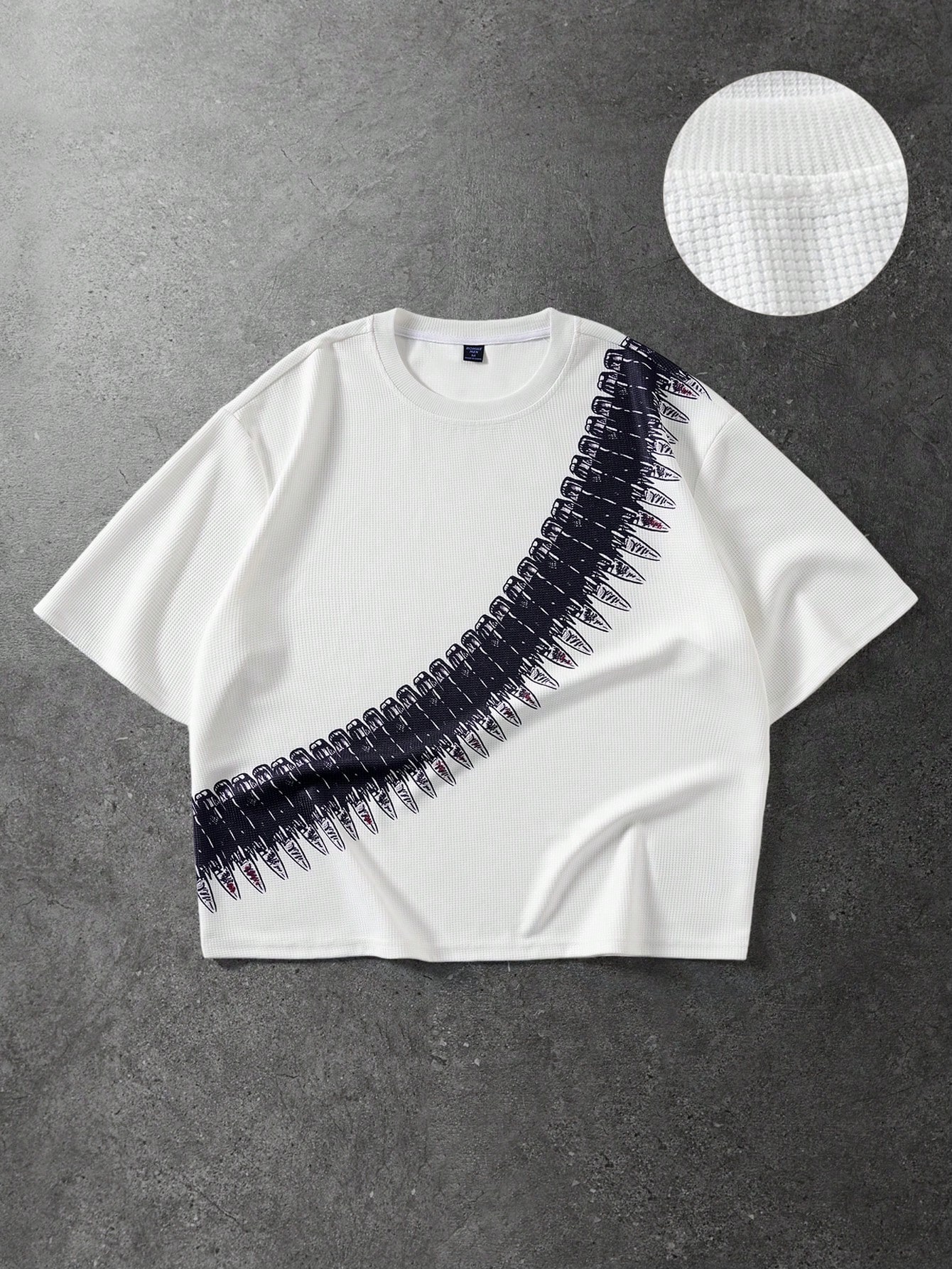 T-shirt ample à manches courtes en tissu gaufré à imprimé balle pour hommes