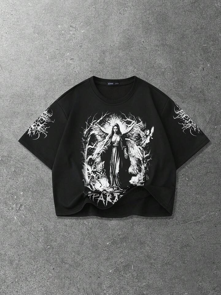 T-shirt à col ras-du-cou décontracté pour hommes, imprimé créatif, manches courtes, coupe ample
