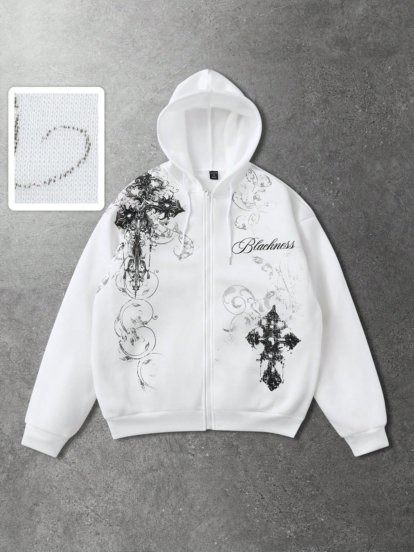 sweat-shirt à capuche décontracté pour hommes avec imprimé croix, automne/hiver