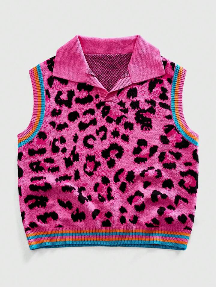 Gilet tricoté à col imprimé léopard, décontracté et quotidien pour hommes, automne/hiver