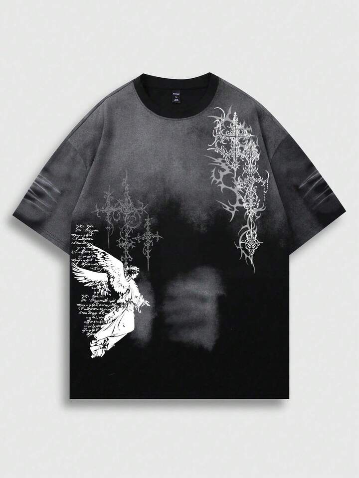 T-shirt à manches courtes pour homme, style décontracté, imprimé ombré, avec slogan Street Angel. Collection été.