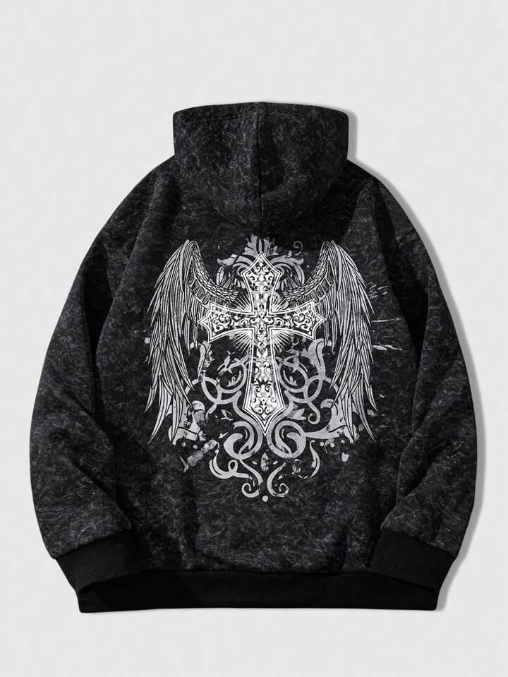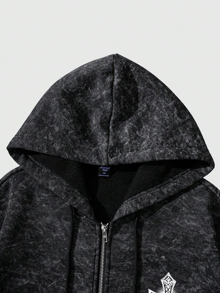Sweat-shirt à capuche zippé décontracté pour hommes avec motif de flocons de neige en fausse fourrure