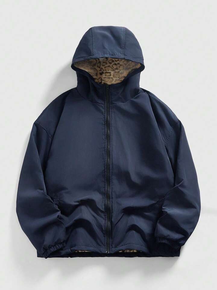 Casual Veste à capuche décontractée et ample réversible avec fermeture éclair pour hommes