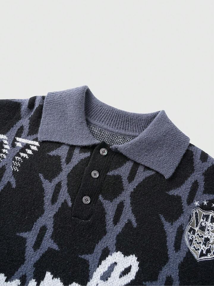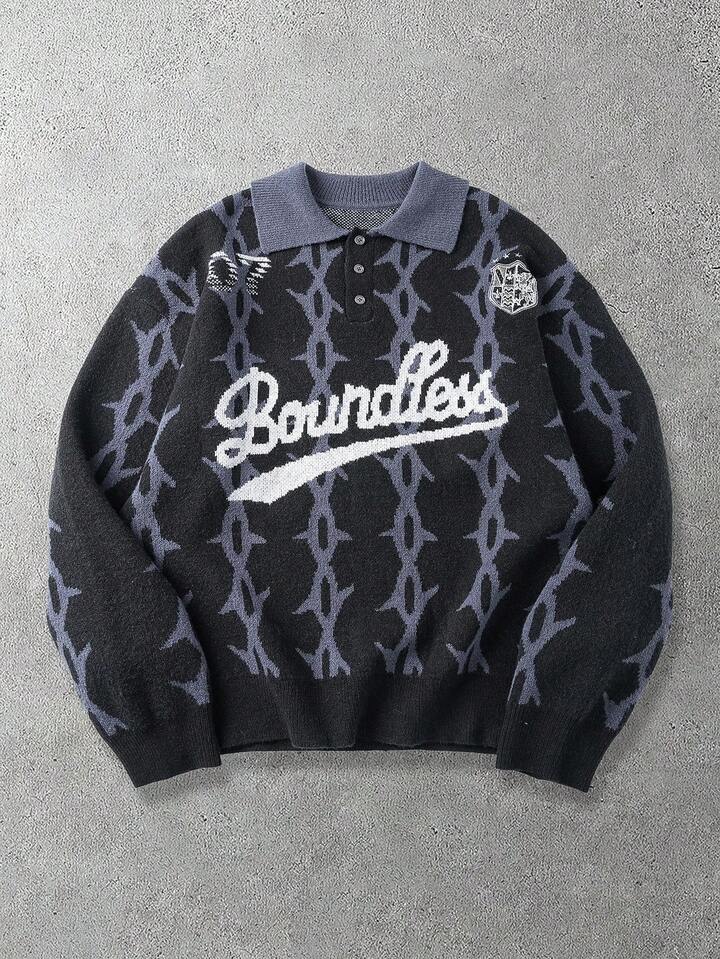 Pull tricoté imprimé décontracté pour hommes
