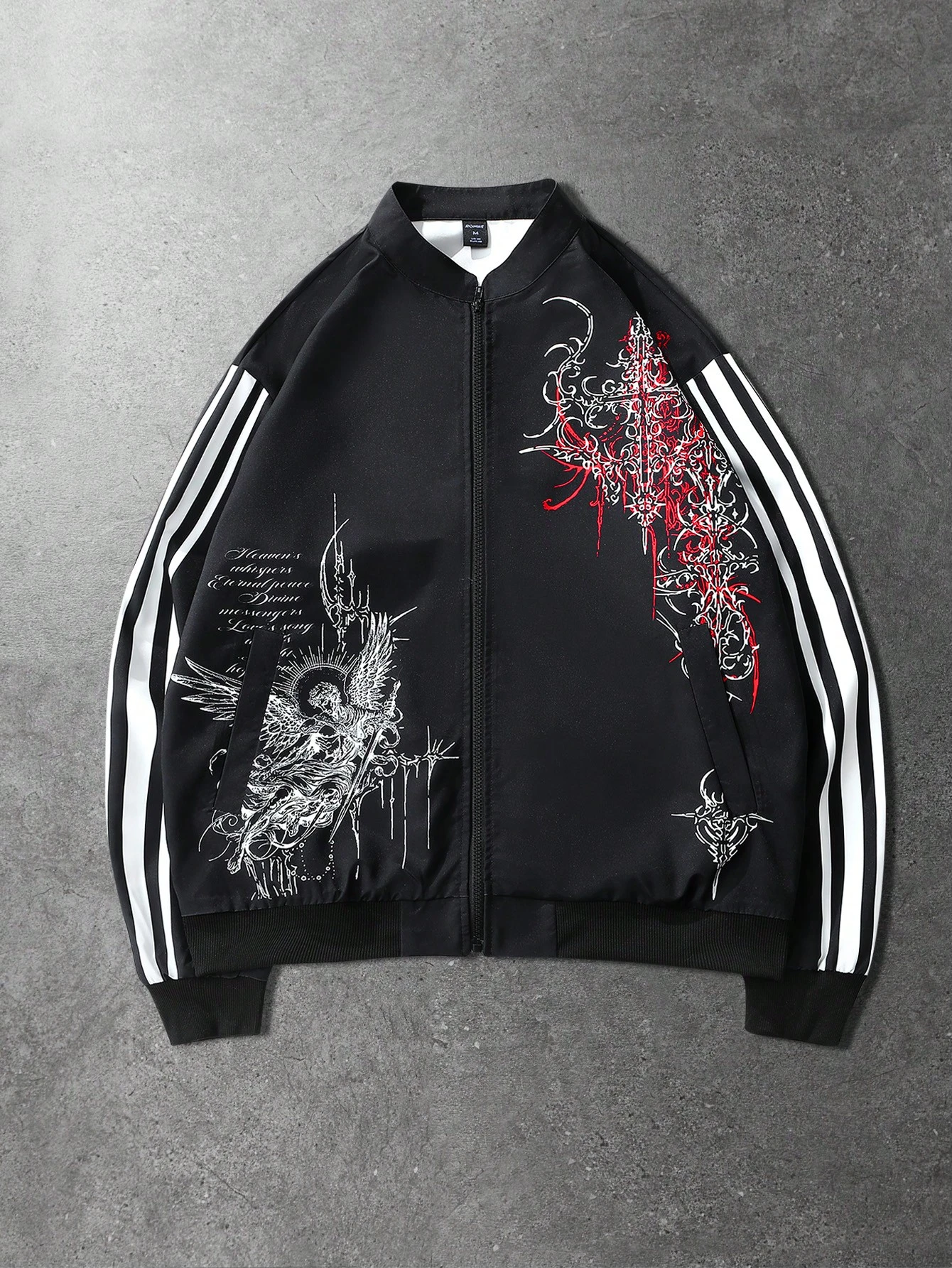 Veste décontractée pour hommes avec imprimé slogan et rayures contrastées, printemps/automne