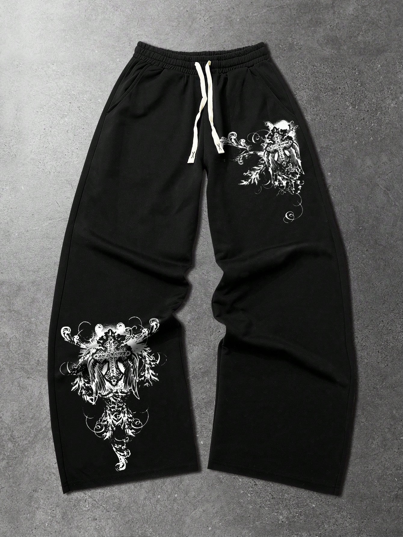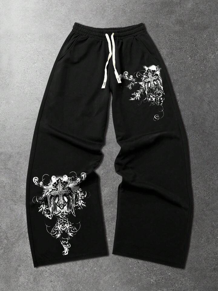 Pantalon de survêtement casual pour hommes avec cordon de serrage à la taille et imprimé croix