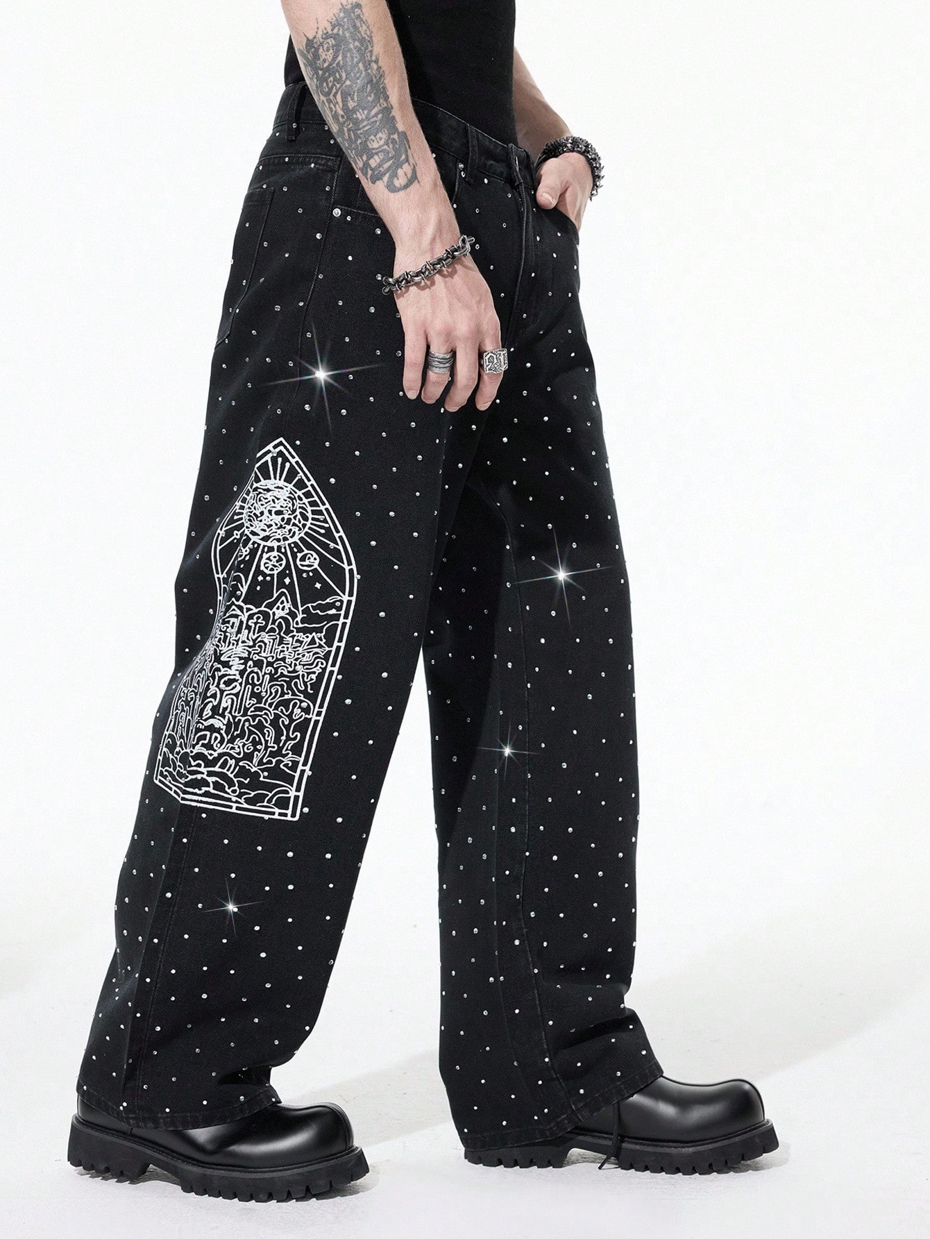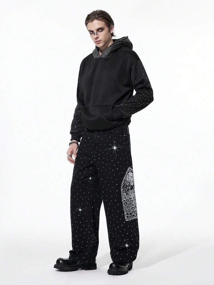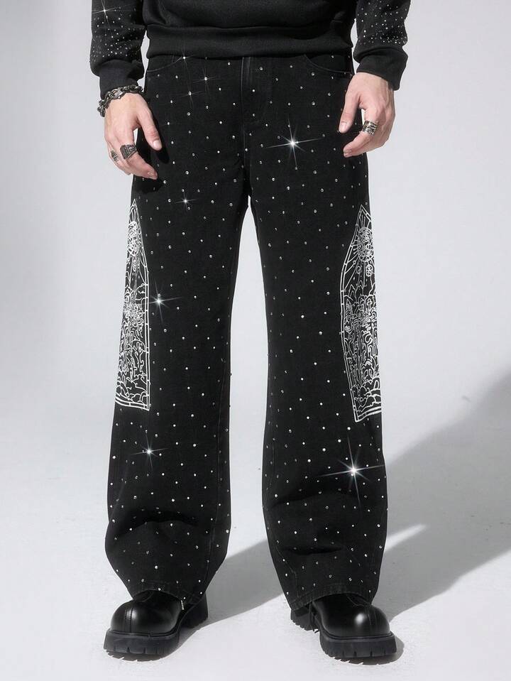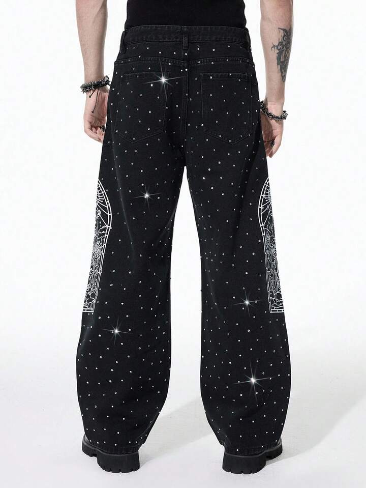 Jeans larges décontractés à boutons et poches pour hommes, style gothique sombre