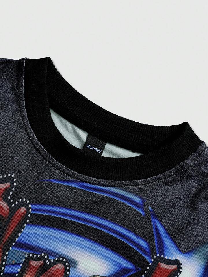 T-shirt à imprimé numérique et diamant pour homme