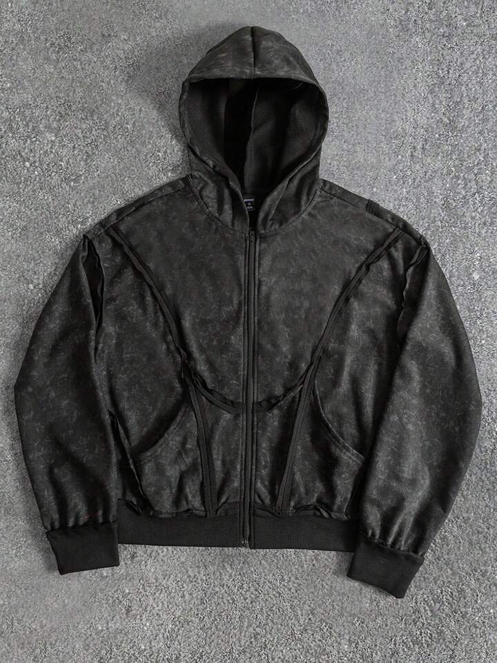 sweat-shirt patchwork délavé pour hommes, coupe ample