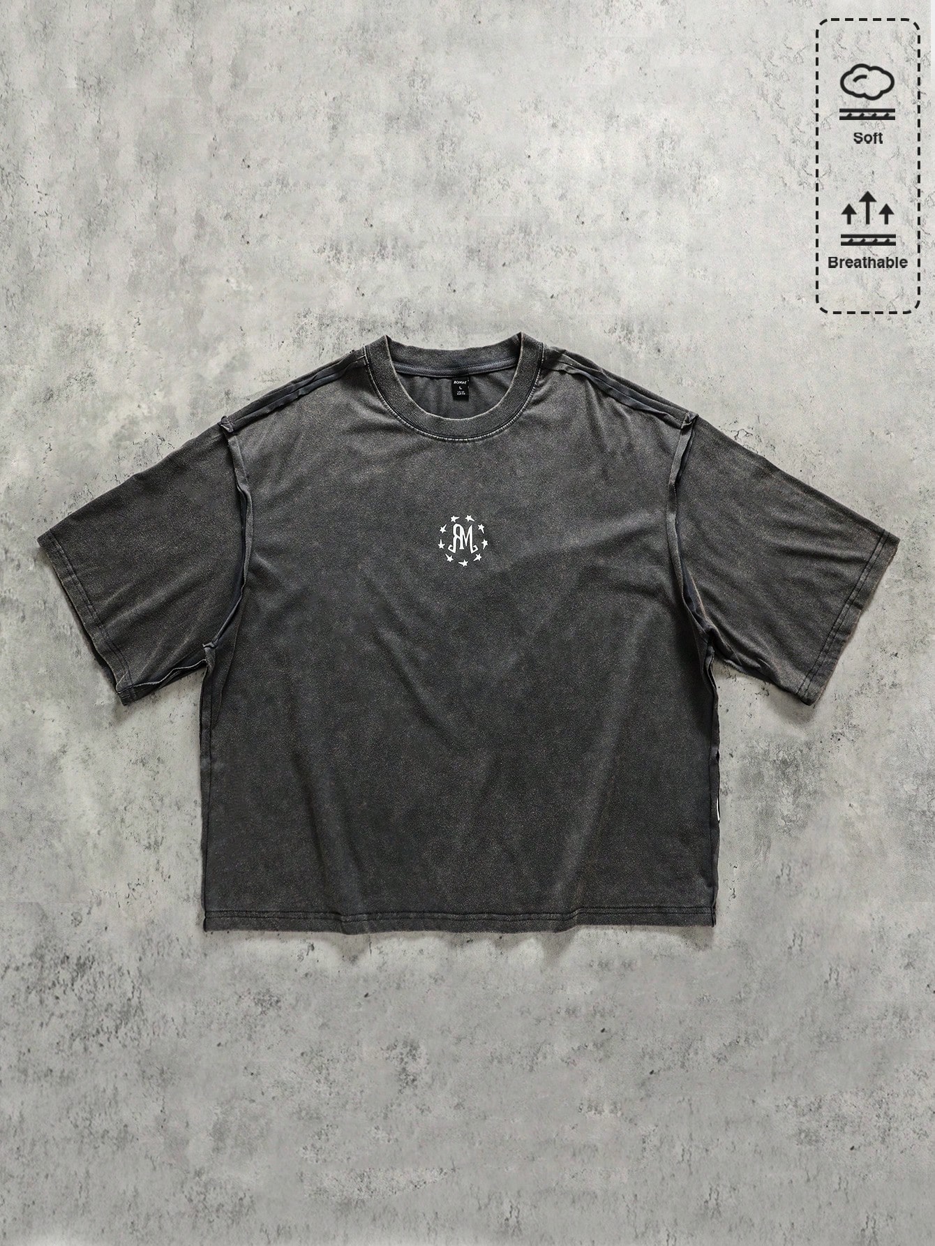 T-shirt ample pour hommes avec ourlet effiloché et lavé avec effet délavé