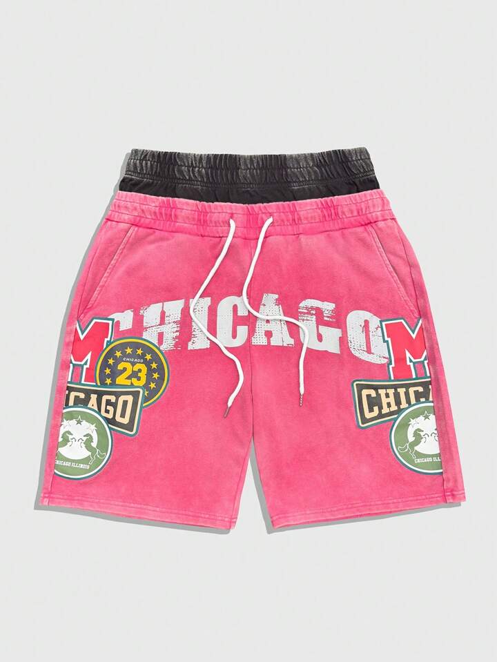 Short à double taille avec imprimé lettre et cordon de serrage à la taille, adapté pour l'été, pour hommes