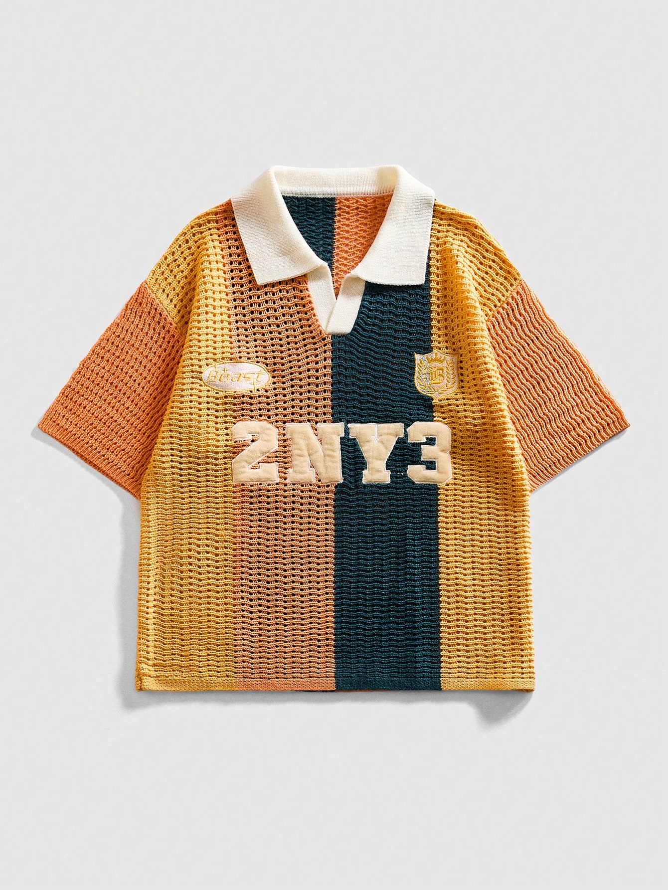 Polo tricoté à rayures jacquard avec broderie pour hommes