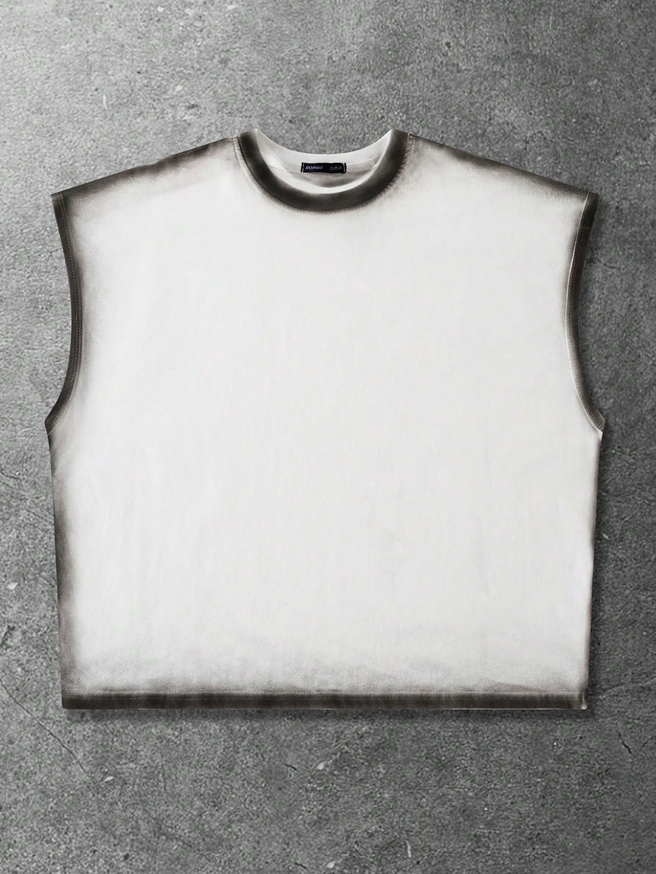 Débardeur d'été polyvalent à col rond pour hommes, avec bordure teinte par pulvérisation, coupe ample et fabriqué à la main