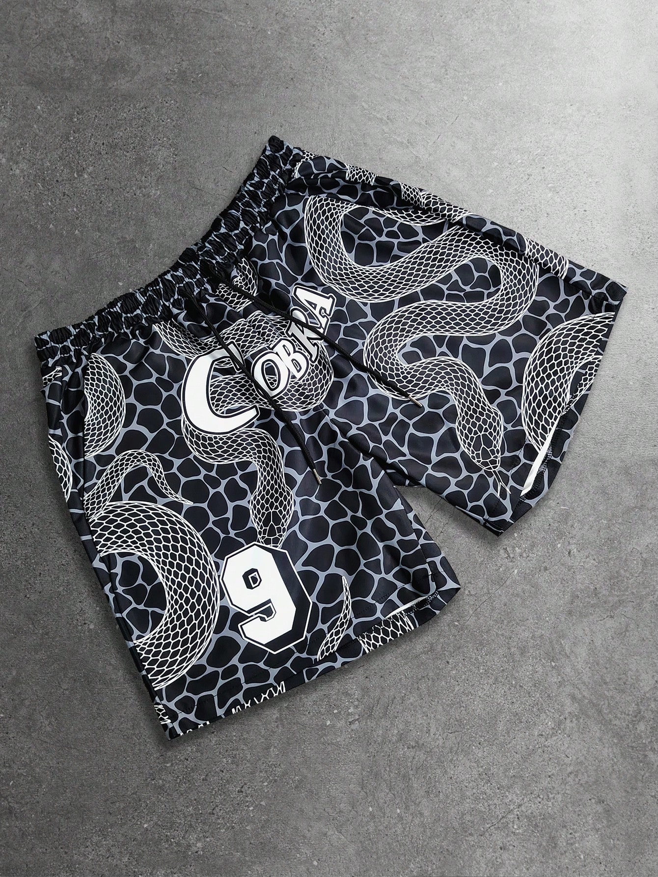 Short décontracté à taille élastique avec imprimé peau de serpent et motif ondulé, pour homme, été