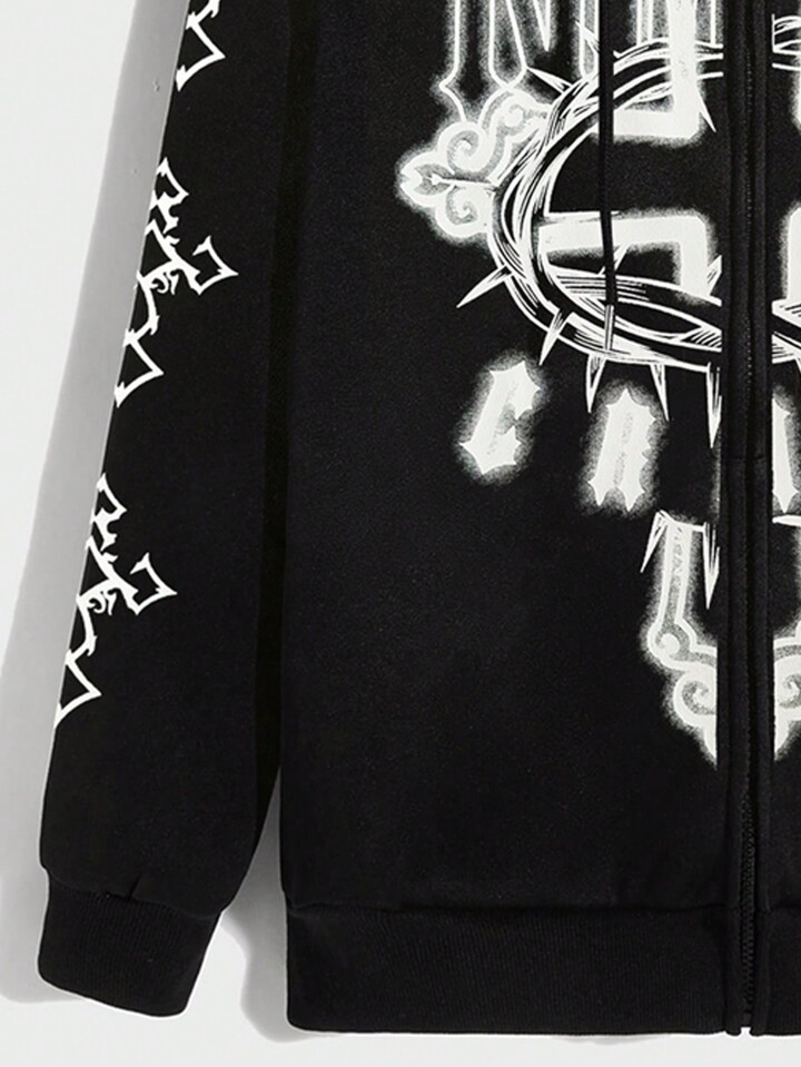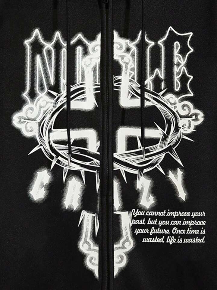 Sweat-shirt à capuche décontracté pour hommes avec fermeture éclair avant et imprimé de lettre